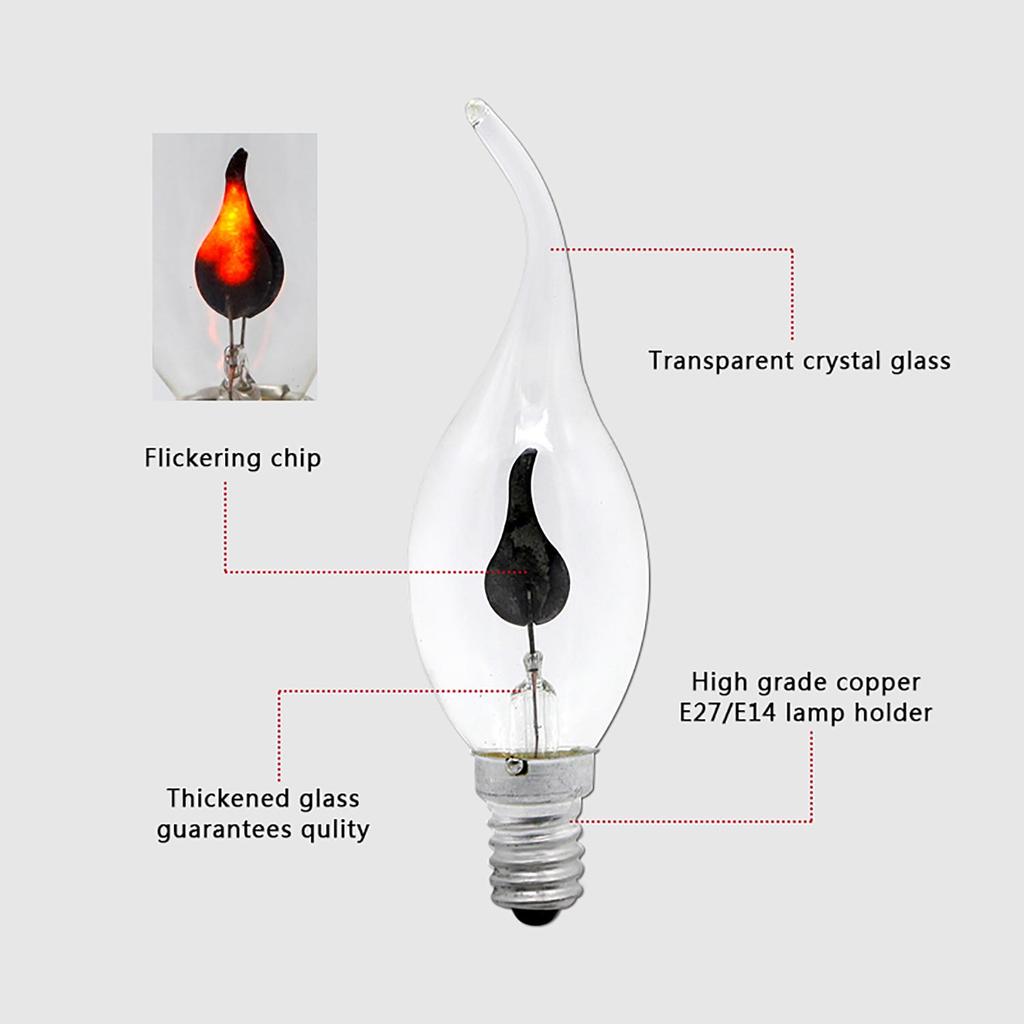 Светодиодная лампа Эдисона с мерцающим пламенем, свеча, эмуляция пожарного освещения, винтажное 3 Вт AC220V, хвост в стиле ретро, энергосберегающая лампа