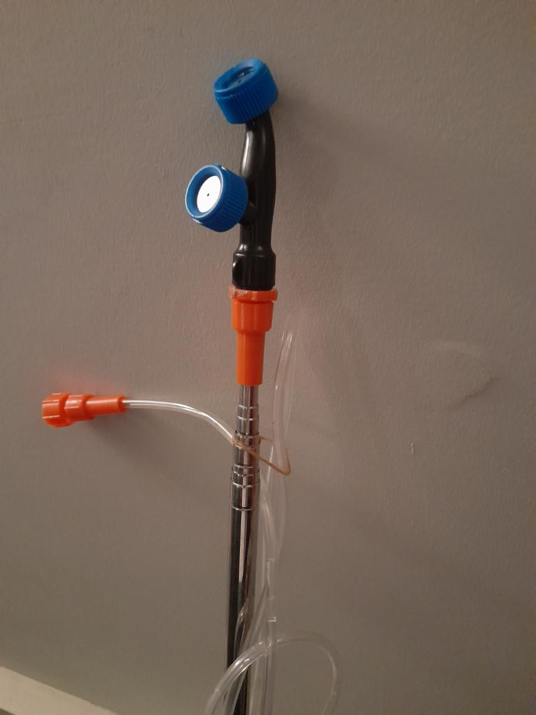 Купил телескопический удлиннитель (2,5 м) для аккумуляторного опрыскивателя "Умница", распылитель (сопло) ни от Умницы, ни от Жуку не подошли по резьбе. Решил купить вот этот, все подошло. Обрабатываю теперь деревья на высоте