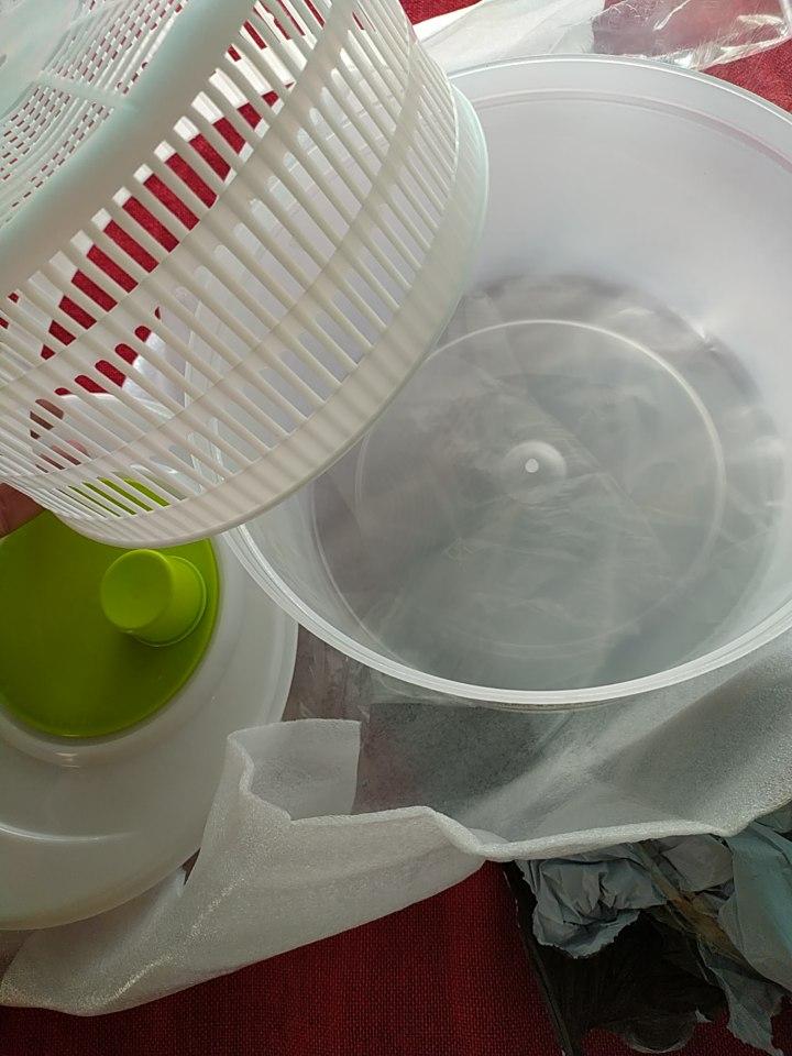 Получили Спиннер ,для удаления влаги из зелени .Прибыло отлично упаковано ,но не смотря на это есть царапины полностью по кругу ,но это не страшно ,главное все целое .Давно хотела себе заказать для просушки трав и зелени в сушилки ,изначально нужно все перемыть после удалить всю воду ,вот для этого и нужен мне этот Спиннер ,а уж после уже сушить в сушилке .Товаром я довольна ,продавца рекомендую .