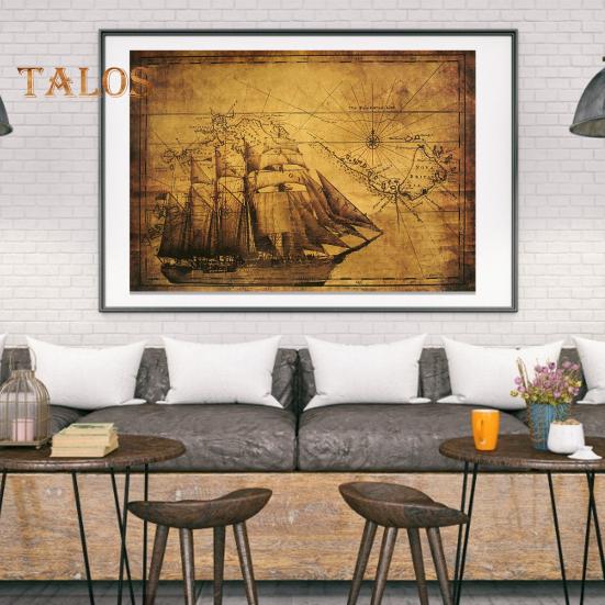 Плакат TDStore, древний парусный корабль, морская линия, узор, крафт-бумага, домашний декор, настенная наклейка для бара