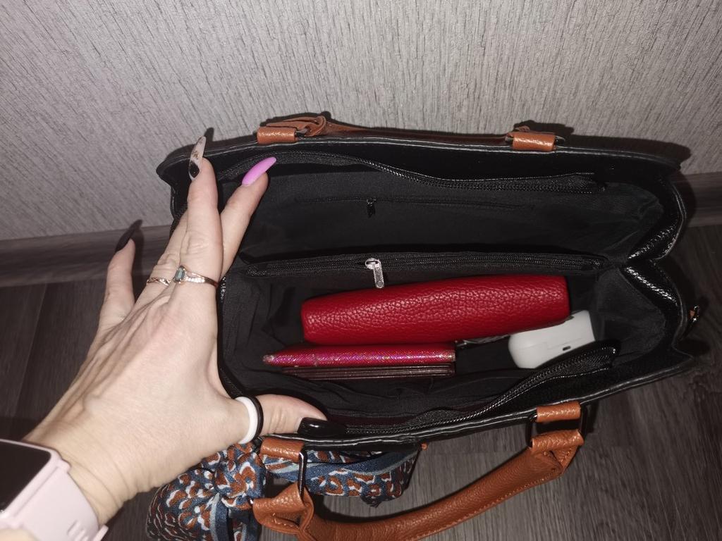 Сумка не та, что на фото. Качество плохое, ручки такие мягкие, что не знаю как и носить сумку. Тяжелее телефон а вряд ли можно что-то положить. Дно по факту должно быть твёрдым, но при транспортировке сложили его пополам как лепёшку, длинный ремень как тряпка. Уловка для покупателей, образец качественный, а по факту ерунда дешёвая. Будет теперь валяться. Никогда больше заказывать не буду на джум, деньги на ветер.
