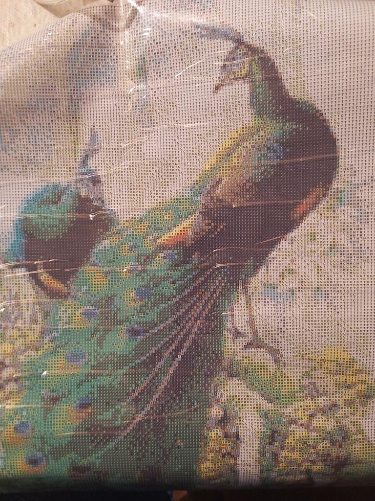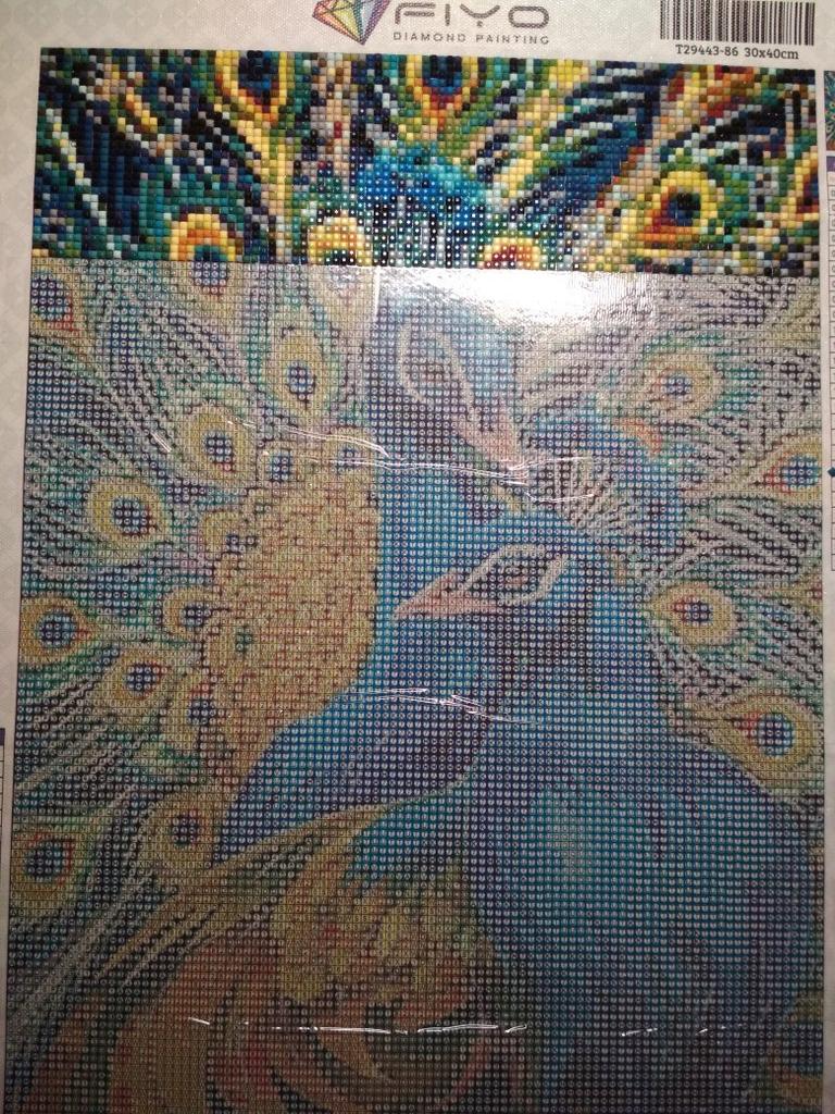 Картина пришла в хорошем состоянии намотана на Валик не замятая Ну вот на картине павлины белого цвета а стразы соответствующие ему этому цвету какие-то серые не знаю как это будет смотреться получится когда как сделаю картину вышлю фото