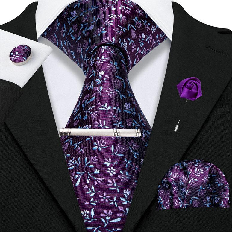 Мужской набор аксессуаров для одежды: галстук с зажимом, платок и брошь-булавка в виде розы — купить товар онлайн с бесплатной доставкой по всему миру!
