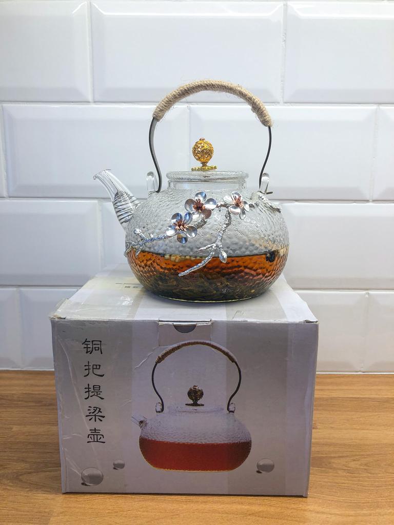 Креативный утолщенный термостойкий стеклянный чайник в японском стиле с цветком сливы с ручкой, домашний цветочный чайник, офисный чайник, подарок