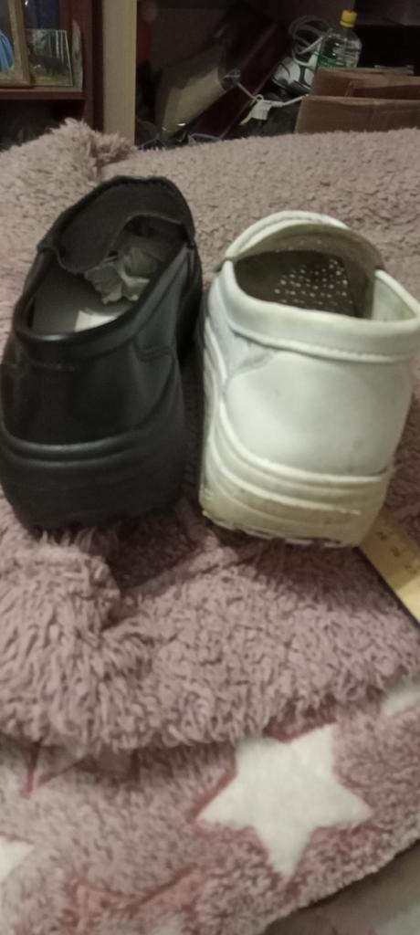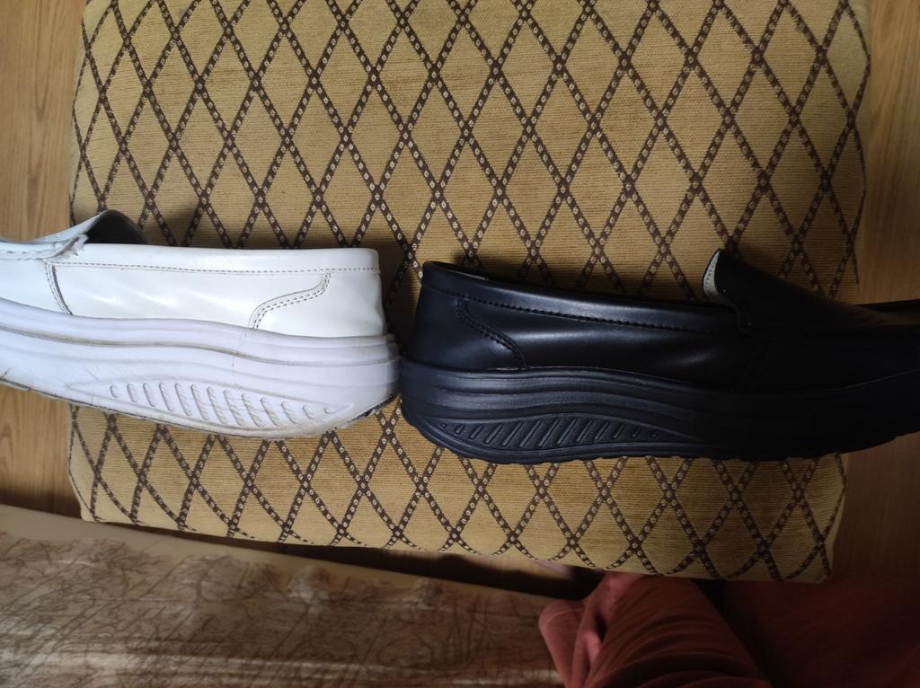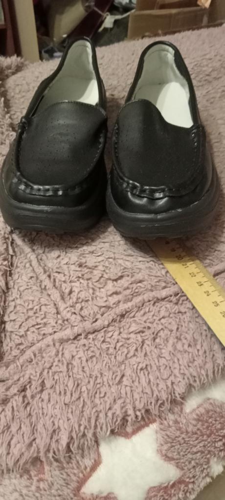 Сегодня получила чёрные туфли. То что они не кожаные и дураку понятно. До этого заказывала белые туфли, которые с удовольствием ношу уже полтора года. Люблю такую подошву, очень хорошо смотрятся, и удобство, как в тапочках. Я не ношу кроссовки, и решила заказать еще чёрные туфли на дожди и слякоть. Доставка быстрая, менее месяца. Но качество стало заметно хуже,( наверно, быстро отклеятся носы) , да и модель изменилась. Платформа в белых 5,5 см, а в чёрных 4 см, и в подошве нет переката!!! И по объёму они меньше по полноте, но это +. Модель стала ".бабкины тапки" !!! Я не довольна моделью. Поставила 5 зв. Что бы вы прочитали...