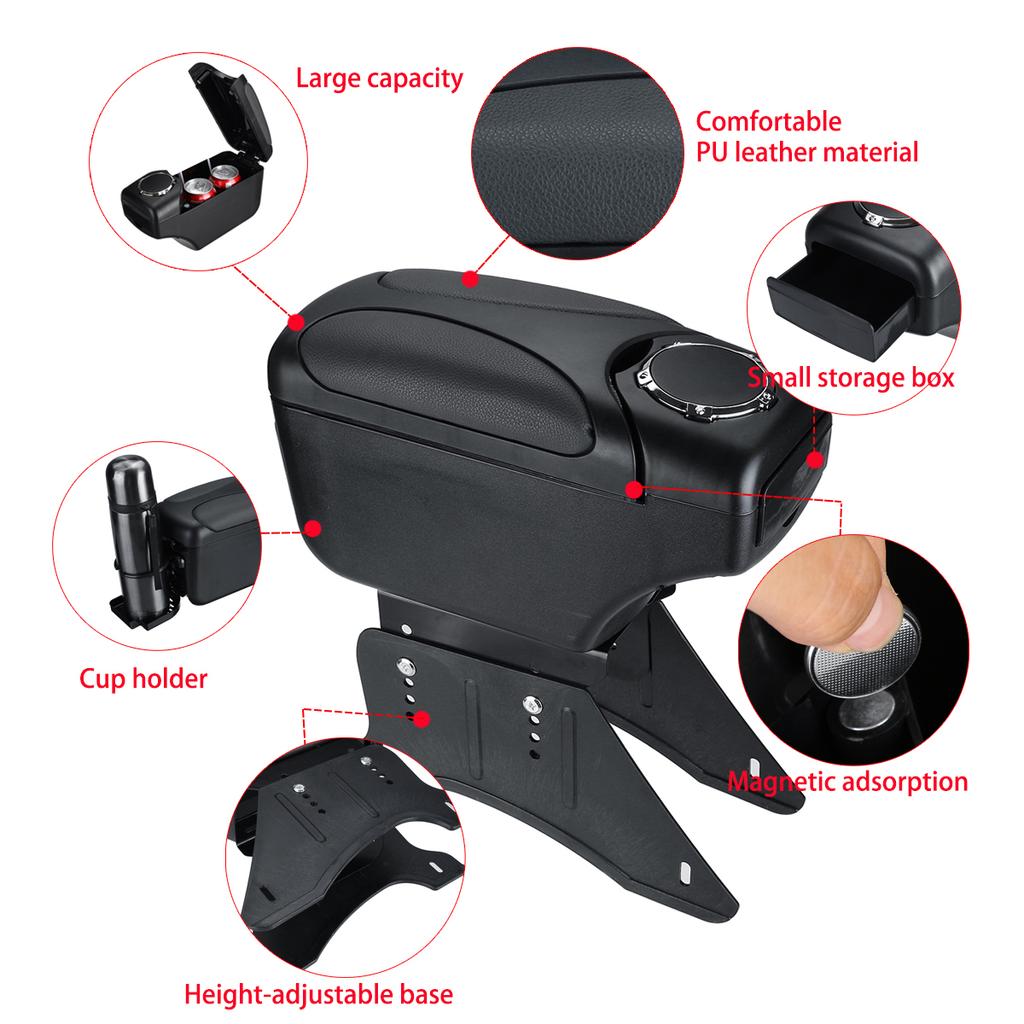 Опорная ножка может быть отрегулирована влево или вправо, а ширина составляет от 6 см до 10 см, так что подлокотник центрирован между двумя сиденьями, и он подходит для оригинальной базы автомобиля..