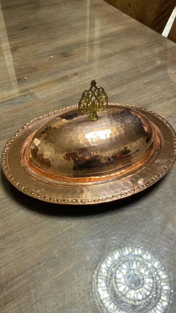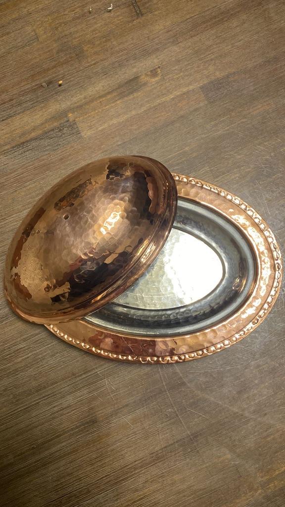 Медное эллиптическое блюдо, Блюдо в деревенском стиле салтанат, Традиционное медное блюдо ручной работы, Аутентичное блюдо, Медный лоток, Тарелка для презентаций с крышкой