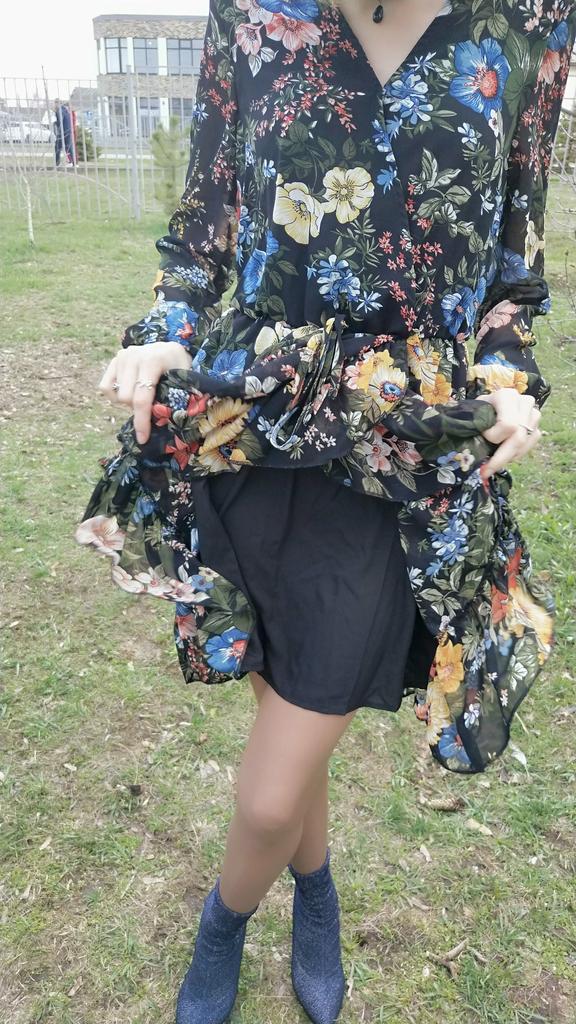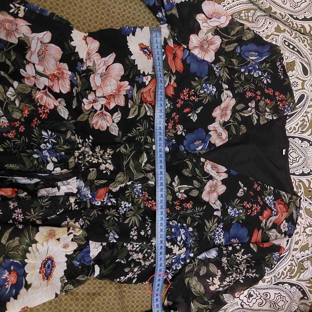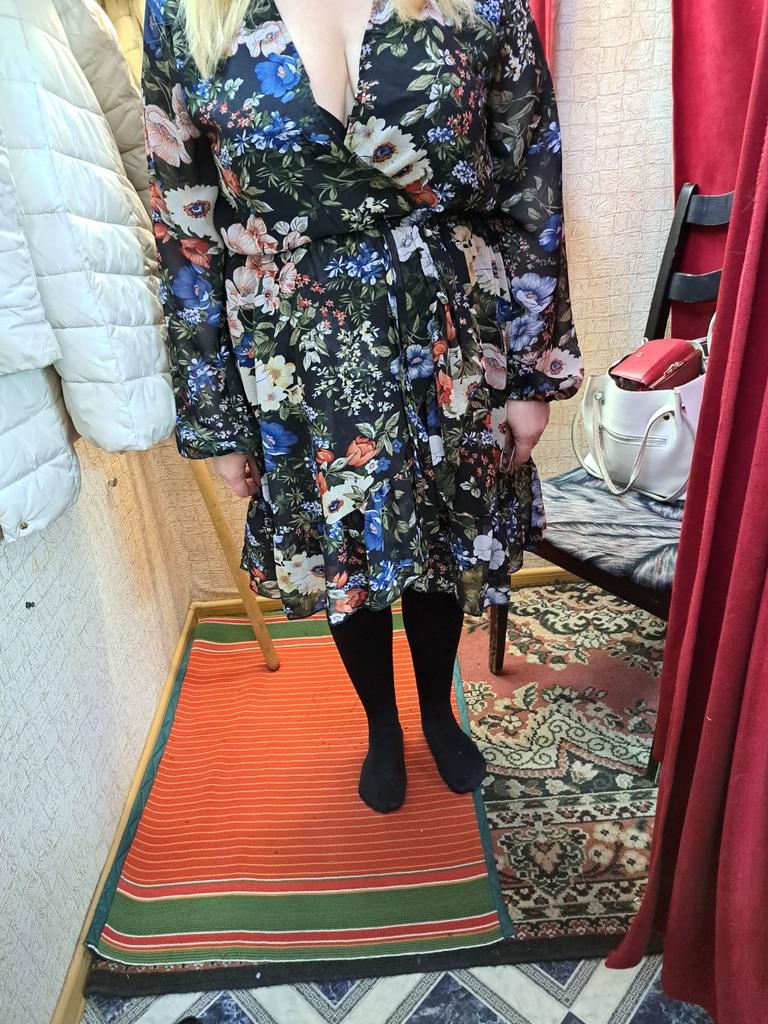 Шикарное легкое шифоное платье Привет девчата! Отзыв восторг. Однозначно рекомендую к покупке. Платье черное с разноцветными цветами. У продавца на выбор еще 2. Я заказала в этом цвете. Платье весеннее -летнее. Очень легкое. Материал полиэстер. Чувствую когда снимаю с себя искрится. В платье находится комфортно. Чувствуешь себя озорной девченкой. Рукава и по талии собраны резинкой. Будет держаться. В зоне декольте имеется потайная кнопка. Можно отстегенуть у кого большая, красивая грудь. Фасон платья с запахом. Украшает платья красивая рюшка и поясок. Мои параметры рост 165 см. Взяла размер S.Совпал с размерной сеткой продавца.