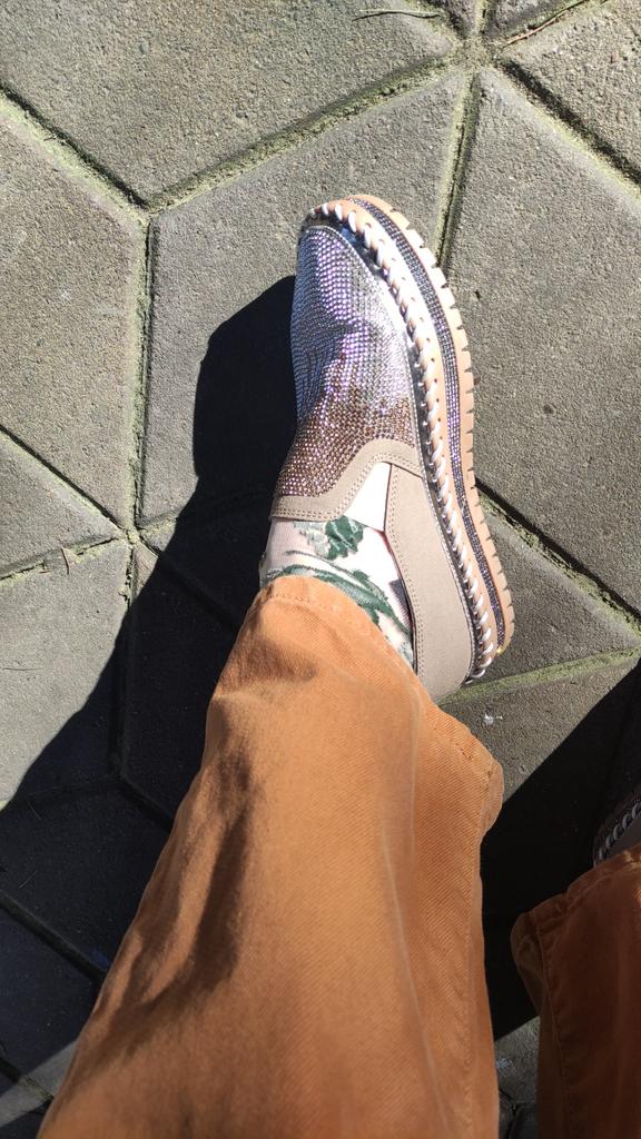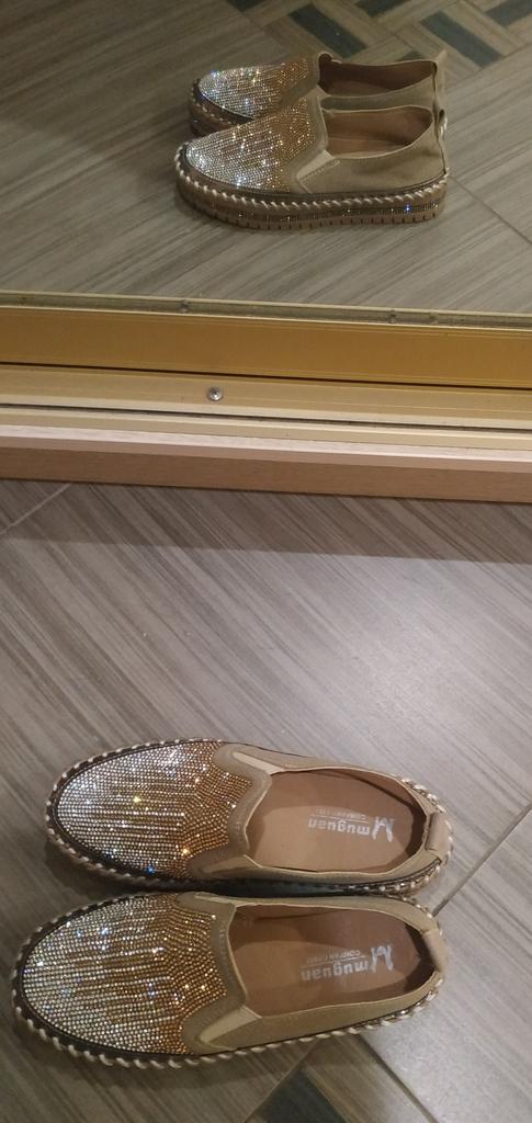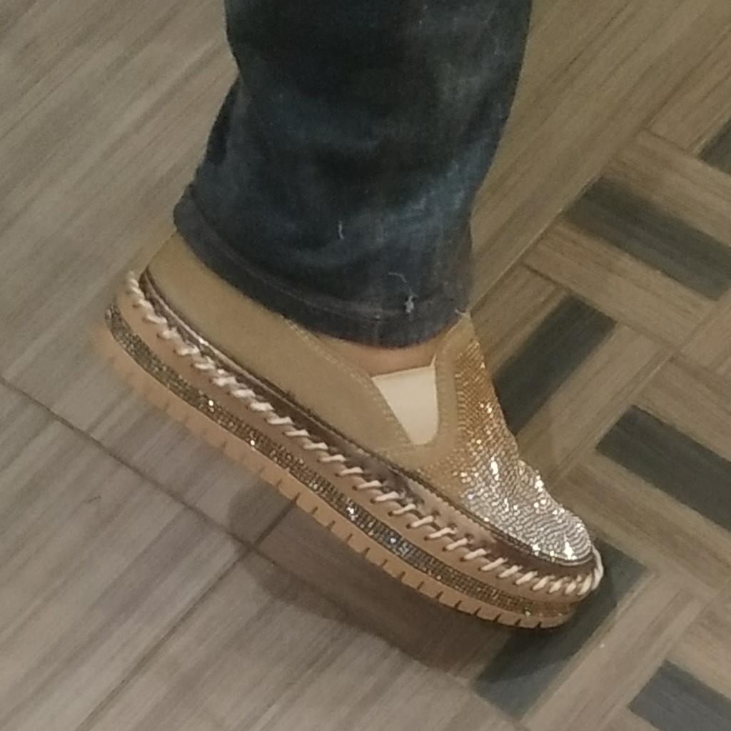 Если вы в душе сорока — невозможно устоять. К тому же, блестяшки нынче на пике моды. На свой размер стопы по стельке 26 см выбрала по размерной таблице продавца — 42. Отлично подошло. Предупреждаю сразу — они не на широкую ногу. У меня полнота 24 см и сидят плотно. (Или это широкая нога? 😁) На высокий подъем подошли. Есть вставка-резинка по бокам, без проблем. Все стразинки на месте. Снаружи сделано все очень аккуратно. Внутри есть небольшой косячок, торчат нитки. Но не критично. Стельки приклеены. На первый взгляд не та дешмань, что вставляют обычно. А так время покажет. Ходить в них удобно и приятно. Каждый камешек на дороге не чувствуется за счёт толстой подошвы. Они на сухую погоду, конечно. Сделаны под замшу. На сухой плитке не скользят, на влажной не пробовала, потом дополню 😁 Ещё взяла себе в другом магазине вот такие ботинки https://at.joom.com/dl/pqHvwQG2b4ZrndTA7 Рекомендовать могу 💟