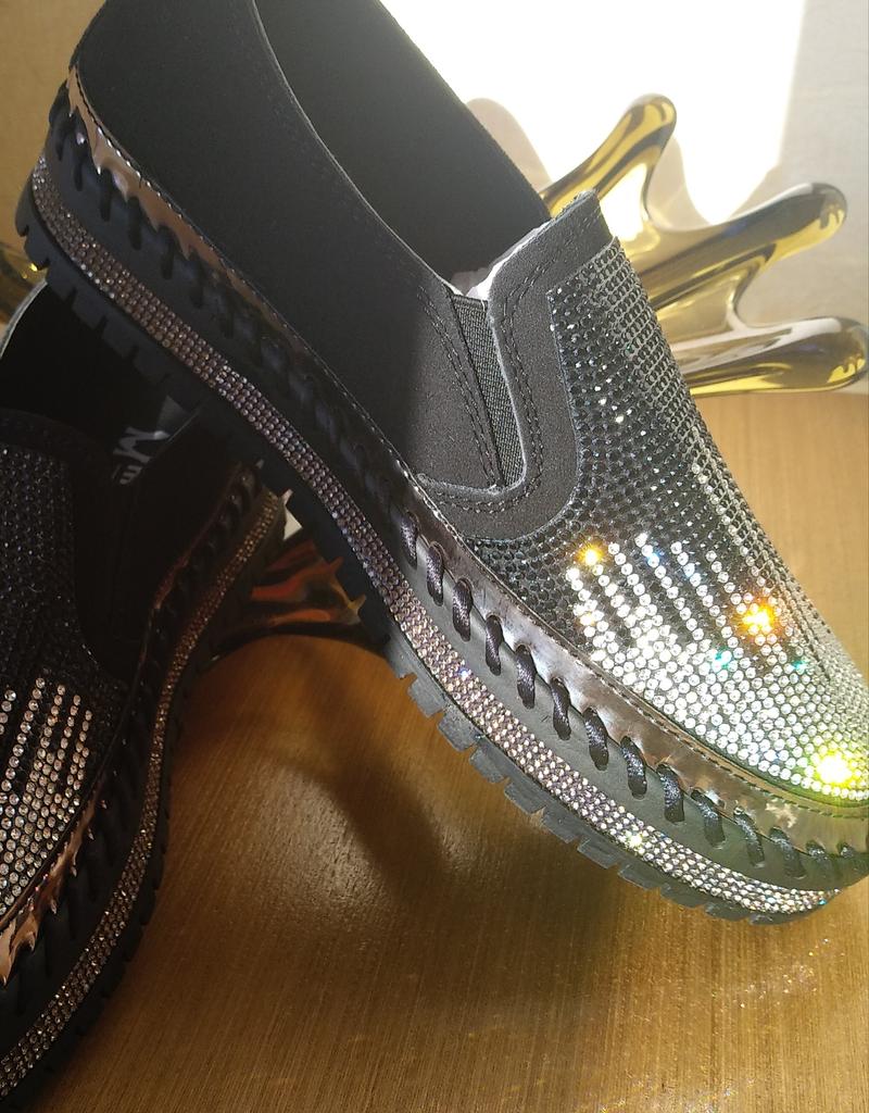 Женские мокасины с блестками и кристаллами, модная повседневная обувь на платформе, обувь без шнуровки — купить товар онлайн с бесплатной доставкой по всему миру!