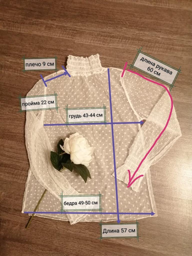 Не могу сделать фото, но здесь уже достаточно выложили - блузка такая и есть, она суперская!! Ворот тянется достаточно, голова пролезает, стойка безупречная, длина рукава как надо - рюши до середины кисти, можно подтянуть при необходимости, резинка удержит рукав. Ткань немного жестковата, но это нужно для такой модели, надеюсь, после стирки эффект не уйдёт)) Длина до середины ягодиц на рост 165 - можно заправить или оставить навыпуск - все будет удобно. Это очень удачная модель и сшита чудесно, сплошной восторг!! Она даже пахнет приятно ☺️