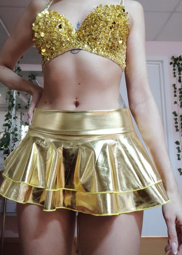 Женская сексуальная металлическая мокрая кожаная многослойная плиссированная мини-юбка с рюшами — купить товар онлайн с бесплатной доставкой по всему миру!