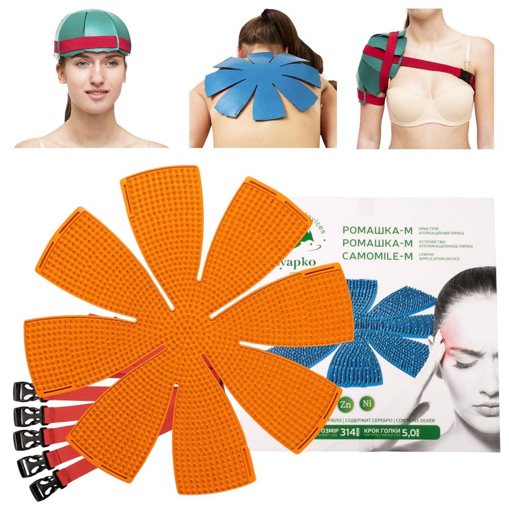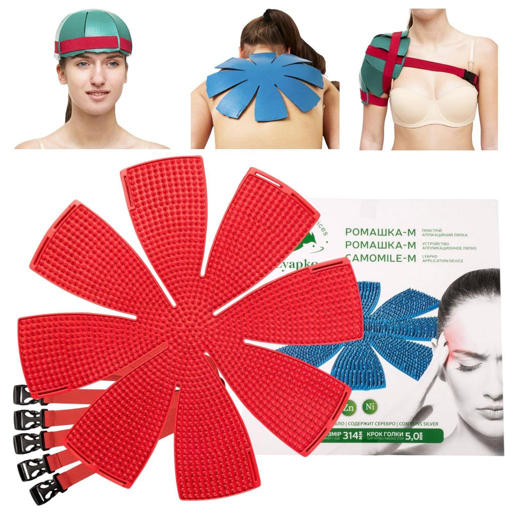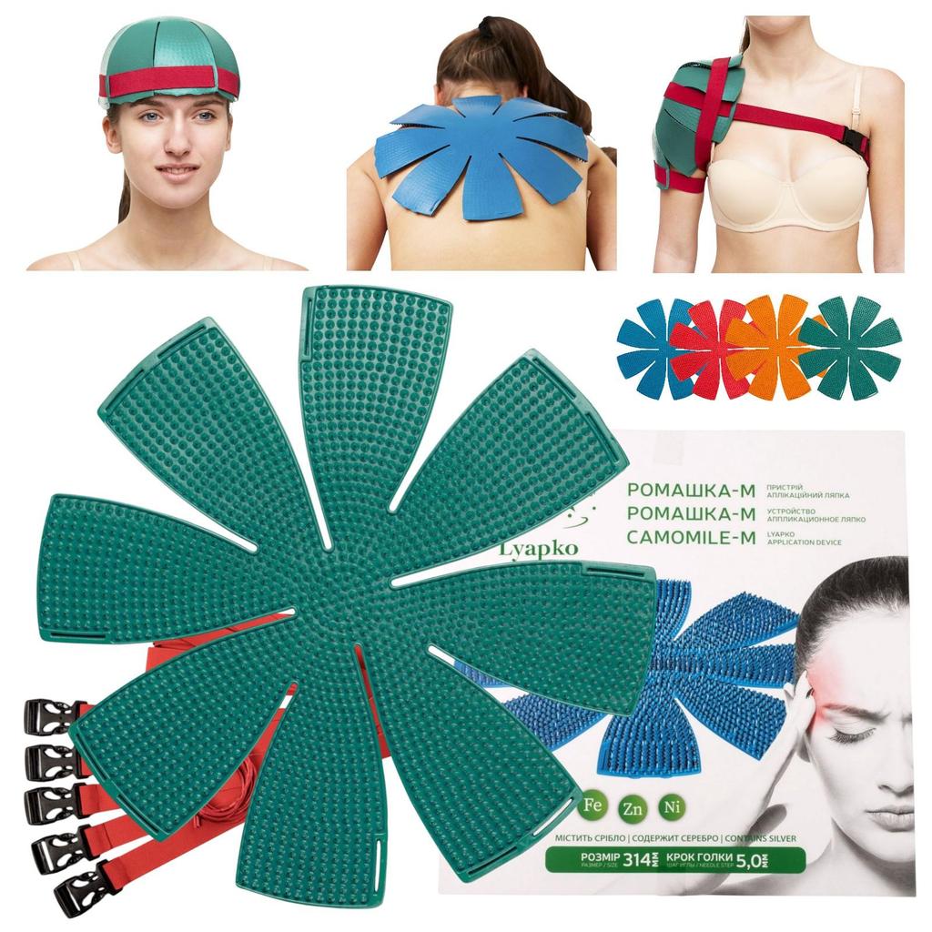 Ромашка — универсальный и многофункциональный аппликатор. Его отличительными особенностями являются: необычная форма, большая площадь воздействия, наличие «подвижных лепестков», которые позволяют повторять рельеф любого участка тела. Кроме этого разрезав (разделив) аппликатор Ромашка по указанным линиям, можно получить сегменты для всевозможных вариантов укладок и фиксаций на различные труднодоступные участки тела.