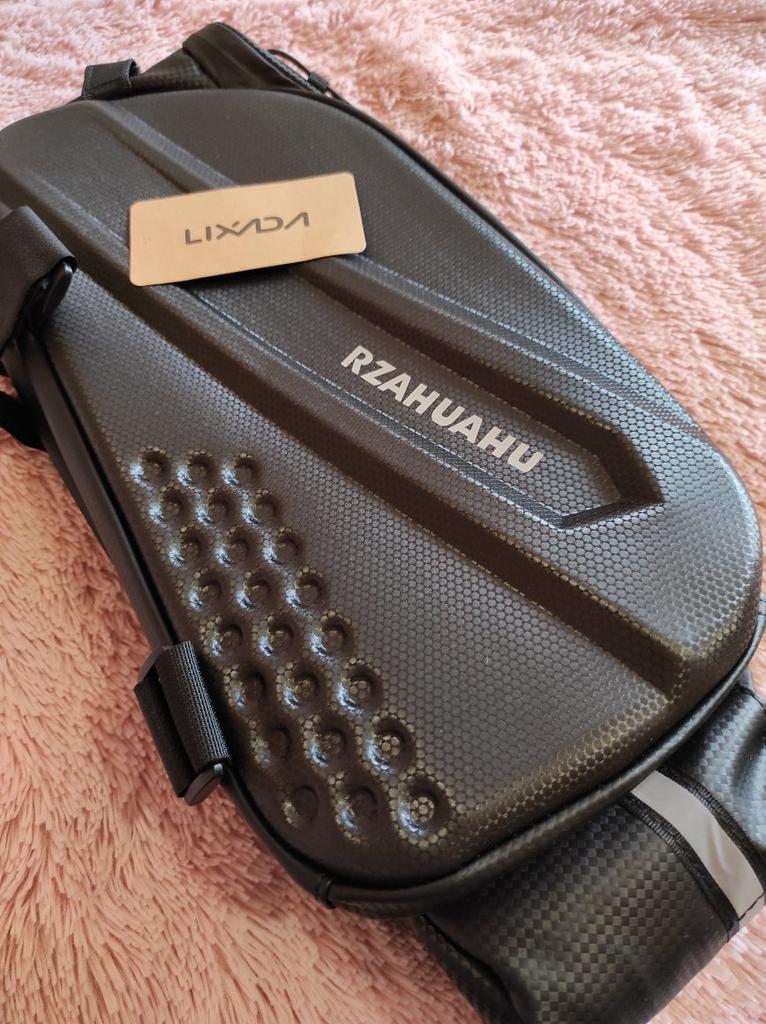 Сумка велосипедная. Порадовала качеством. Просто замечательная! Заказ оформляла в проверенном магазине Lixada, торгующим товарами для спорта и путешествий от производителя, одноимённого бренда. А огорчила – сроком доставки. Продавец здесь ни при чём, почему-то большинство июньских посылок шло очень долго, и не только у меня. Заказала я сумку 25 июня, а получила – 6 сентября. После окончания гарантийного срока доставки. За пару дней до получения Джум прислал мне письмо с запросом, после которого мне вернулись бы затраченные средства. Но я решила подождать, так как по отслеживанию видела, что посылка наконец-то приближается. Получила и подтвердила получение. Задержка доставки огорчила меня, потому что заказывала я сумку в подарок сыну. Закончились каникулы, и студент уехал, прихватив свой велик. Теперь буду отправлять почтой. Сумка крепится на багажник, а на моём велосипеде его нет. Поэтому на одной из фотографий просто для масштаба поставила сумку на крыло велосипеда. Сумка классная. Каркасная, держит форму. При, казалось бы, небольших размерах, очень вместительная. Пришла в сложенном состоянии, и чтобы расправить, я решила её набить вещами. В сумку влезли две толстовки, спортивный костюм и свитер. Крепится сумка к багажнику при помощи двух поперечных лент-велкроо. Такая же текстильная застёжка есть на торце, для дополнительной фиксации. На противоположном торце – объёмный карман, куда можно поставить, к примеру, бутылочку с водой. Верх кармашка стягивается тесьмой с пластиковым фиксатором. Поперёк кармана проходит светоотражающая полоса. На крышке сумки – резинка, проложенная в петли. Под резинку кладутся вещи, которые могут понадобиться во время дороги (удобно, не надо открывать сумку чтобы взять, к примеру, толстовку). Крышка сумки открывается с трёх сторон. Молния – с двумя собачками, может застёгиваться-расстёгиваться в любую сторону. Молния водонепроницаемая (зубья молнии в закрытом состоянии скрыты). Внутри сумки – одно объёмное отделение, но вдоль боков, по всей длине, проходят карманы из сетчатого материала. В комплекте прилагается текстильный ремень с карабинами, регулируемый по длине. На торцах сумки для его крепления предусмотрены пластиковые кольца. Также на одном из торцов есть ручка для переноски сумки. Приятным бонусом оказался чехол для сумки, вложенный в карман. Если надеть его на сумку, вас точно будет видно водителям автомобилей. Если вы занимаетесь велоспортом, или просто выбираетесь на великах на пикник, обязательно присмотритесь к этой сумке.