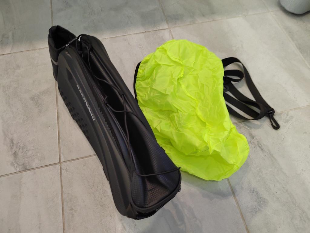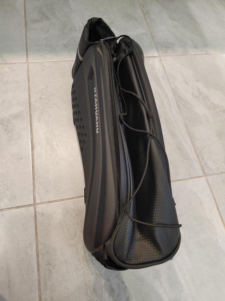 Добрый день. ДОСТАВКА из Москвы в Калининград заняла 10 дней, 29.12-08.01.2024. Быстро! Бесплатно. КОМПЛЕКТ: сумка-кофр, плечевой ремень, противодождевой чехол. ЦЕНА со скидкой 20% - 1382 руб. КАЧЕСТВО - хорошее. Твёрдые боковины, прорезиненный замок, непромокаемый материал + яркий цветной чехол. Швы ровные, нитки не торчать, пошито добротно. ФУНКЦИОНАЛ - отличная замена небольшого рюкзака! Несмотря на кажущиеся небольшие размеры - вещей помещается много: смело две взрослых толстовки, 1,5 литра воды и ещё останется место под бутерброды + наверх под шнуровку можно ещё вещи закрепить + карман под воду. Я думаю ещё мелочовку можно сложить. На внешнем кормане (под 1-литровую бутылку воды) светоотражающая лента + петля для заднего стоп-сигнала Ещё не закрепил, но по отзывам держится неплохо. Крепление к велобагажнику в 3 точках на ленте-липучке. С началом велосезона дополню, если будет возможность.