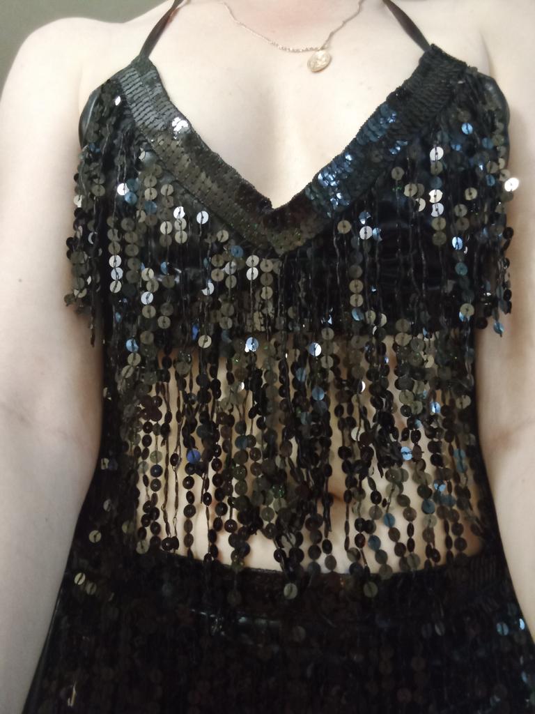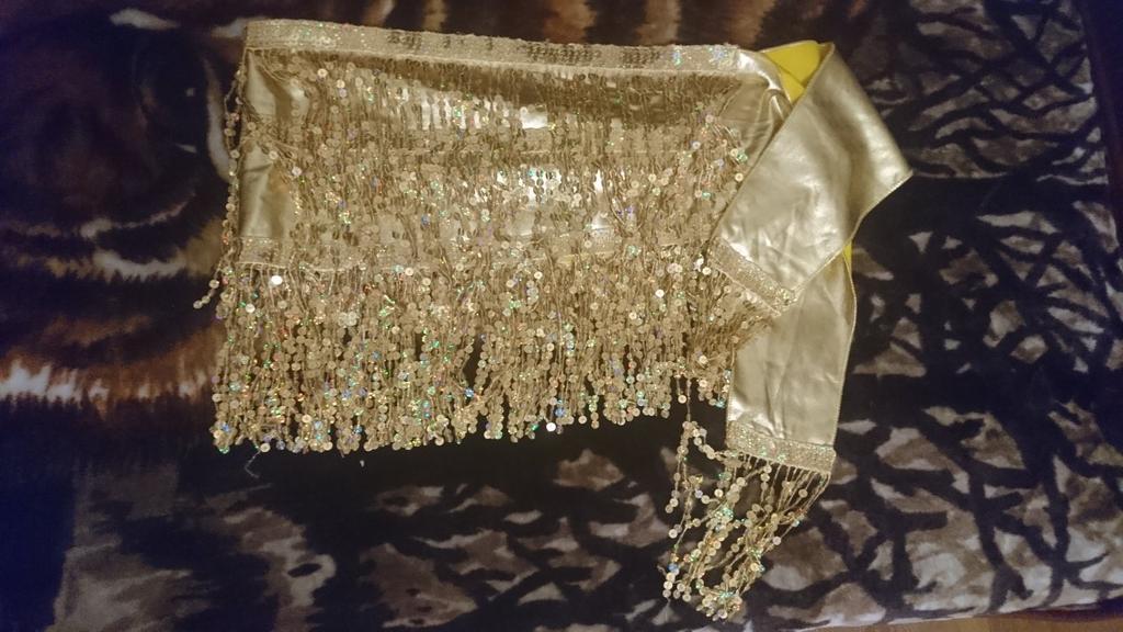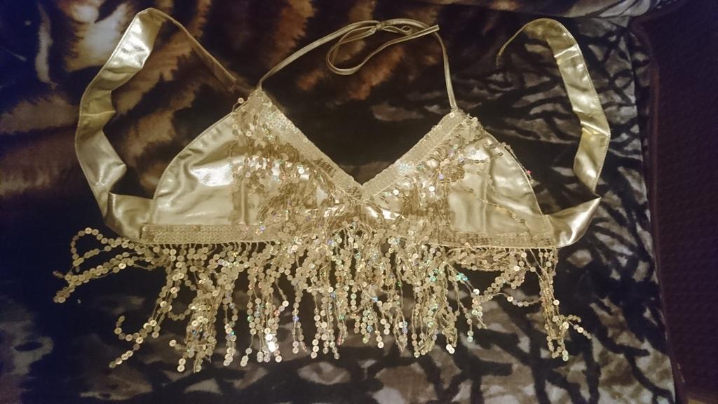 Красивый набор из пояса и лифа, обшит золотистыми паетками💗 По размеру всё подошло. Только учтите, грудь держит не сильно хорошо, лиф без чашки)) Мне нравится, советую! Благодарю продавца!