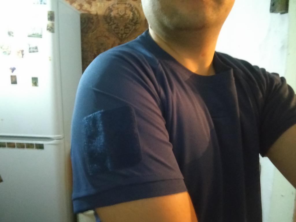 Не смотря на все прелести, материал- полиэстер. В принципе, кто не особо помешан на натуральном, тому без разницы, ибо футболка, не смотря на ткань, дышит и приятная на ощуп.