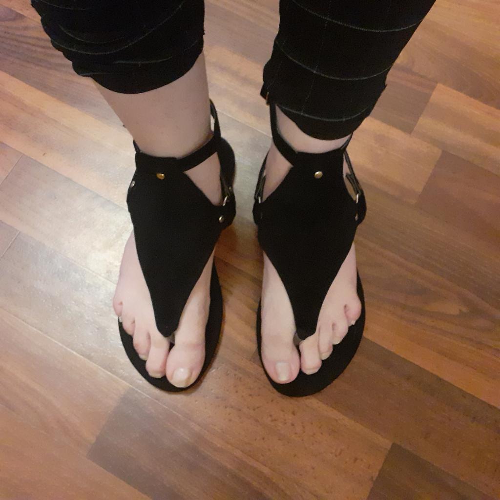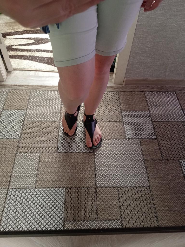Сандалии в римском стиле. На ноге смотрятся неплохо, но качество кожзама не соответствует цене. По размеру стопы 23 см подошёл 37. У продавца в трёх цветах, у меня чёрный. По толщине мне великоваты, если в щиколотке можно утянуть ремешком, то в районе косточек ничего не сделаешь, к ноге не прилегают. Кожзам как клеенка, прослужит недолго, максимум сезон. Обувь восторга не вызвала. Рекомендовать не решусь.