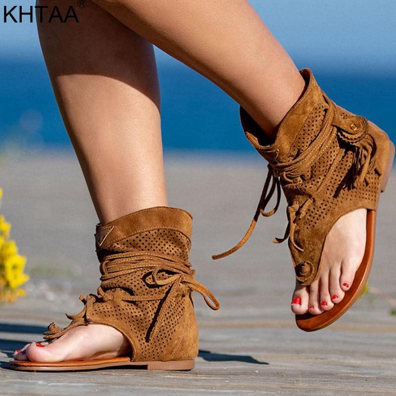 Женские сандалии-гладиаторы, женские винтажные ботинки с застежкой на носок, повседневные римские модные летние женские туфли с кисточками, женская обувь