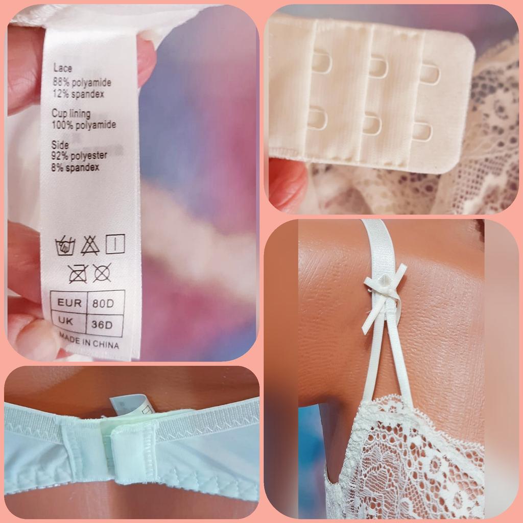 ВСЕМ ПРИВЕТ 🙋💖 🔸🔸НЕЖНОЕ КРУЖЕВО 🔸🔸 🔸Материал: 10% спандекс, 90% полиэстер. 🔸У продавца в трёх расцветках 🔸Мой бежевый, смотрится как молочно-белый. 🔸Очень нежное тонкое кружево, мягкое. 🔸Х/б внутри нет, только косточки внутри обшиты мягкой тканью и застёжка внутренняя сторона. 🔸На свои параметры Ог. 95см. Под бюст. 79см. 🔸Взяла размер 36D , наш размер обычно покупаю 75С/D 🔸Застегнула свободно на первые крючки (в запасе ещё 2) комфортно. 🔸Замеры бюстика 69см., Не растягивая. Спасибо большое продавцу и JOOM 🥰 Кому понравился, РЕКОМЕНДУЮ! Всем добра и отличных покупок 💐💞