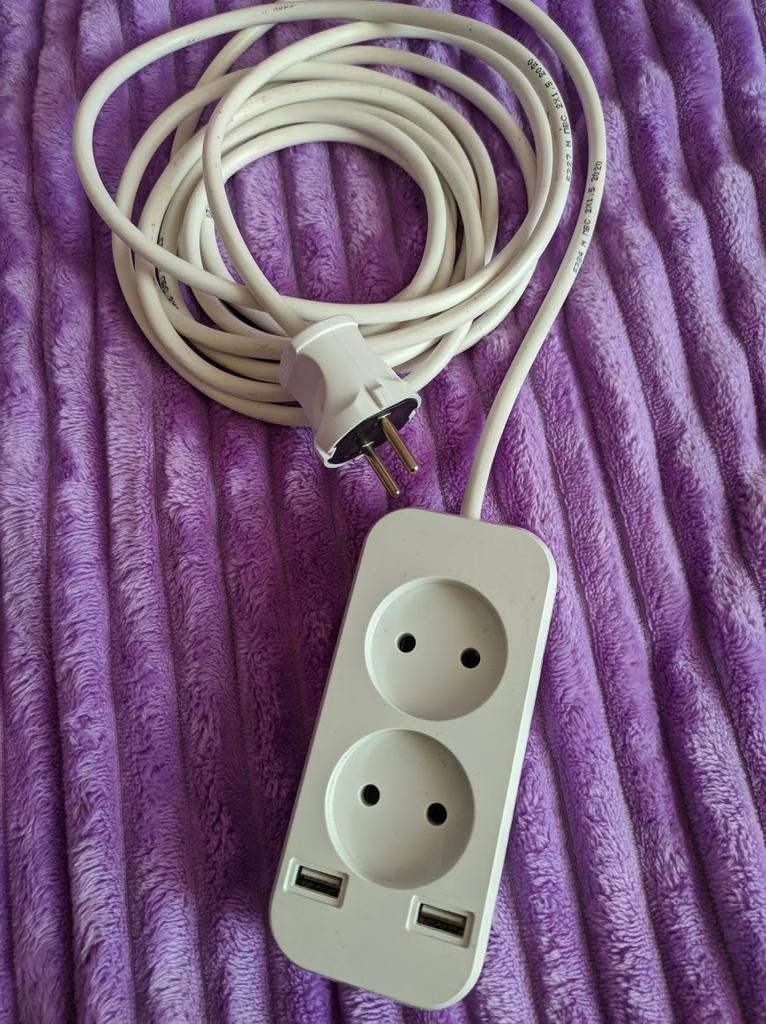 Вот такой замечательный удлинитель собрал мне муж! 😍 Давно поглядываю в сторону розеток, имеющий дополнительное USB-гнездо. Это ж просто сказка – не надо искать, куда подевались адапторы, когда телефон срочно требует зарядки. Розетки менять необязательно. Мне как раз нужен удлинитель, и я заказала на Джуме замечательную внешнюю розетку – 2 обычных гнезда (под евровилку) и 2 USB-гнезда. Розетка без заземления, я купила 4 метра обычного двужильного кабеля и вилку. Пятнадцать минут, и удлинитель готов! Я очень довольна, устройство получилось очень удобным. Розетки достаточно тугие, вилка из такого гнезда не выпадет. На обратной стороне есть отверстия, удлинитель можно подвесить на стену. Теперь я не привязана к определённому месту в комнате, возле розетки. Мобильность – наше всё! 😎 Ура! Рекомендую.😁