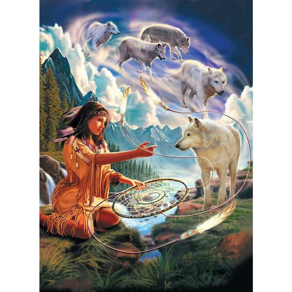 5D алмазная картина «Девочка и волк», картина из стразов, вышивка бисером, алмазная вышивка, полный круглый/квадратный набор сверл, домашний декор