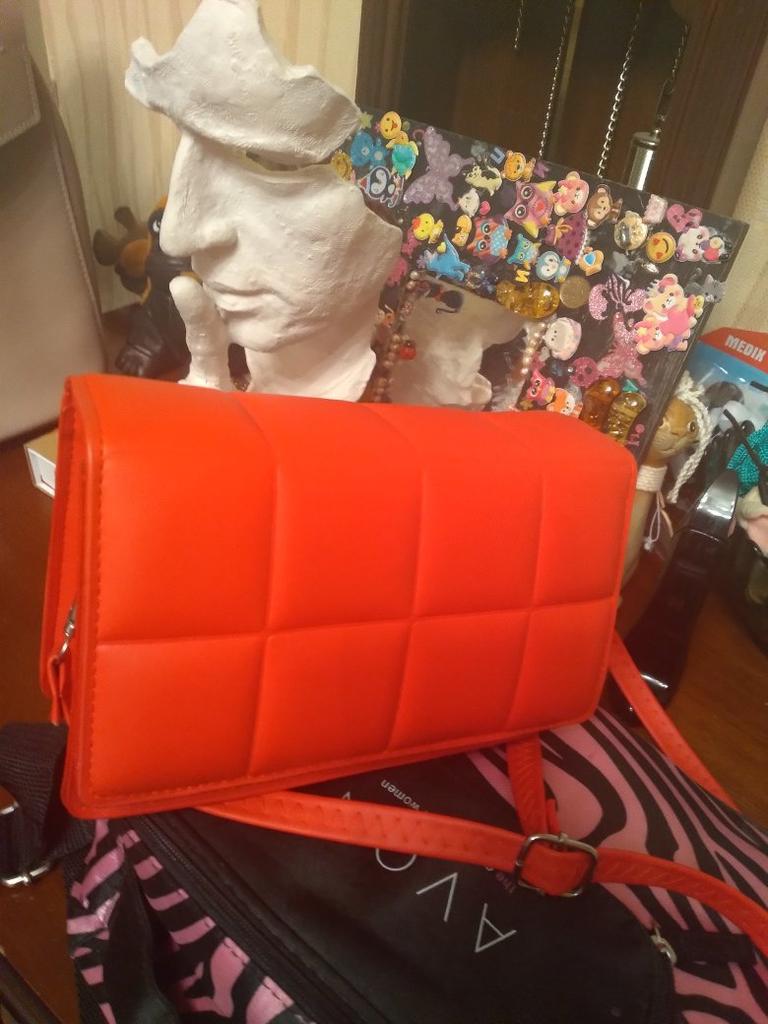 Клатч - разочарование 😔 Промокод на скидку 5 % - P5U9NS0WTY В целом сумка норм, если бы не 3 НО! ❗ Карабин сломан. ❗ Лицевая сторона сумки в мелкую черную крапинку( не оттирается). ❗В середине царапина, ооочень заметная. Благо, служба поддержки работает быстро и организовано. Деньги за сумку вернули. Сумку отдам племяшке. По качеству хорошая, мягкая на ощупь. Цвет красивый.... Закрывается на две магнитные кнопки - быстро и удобно. Ремешок на карабинах в длину : 125 см, уменьшается до 65 см.