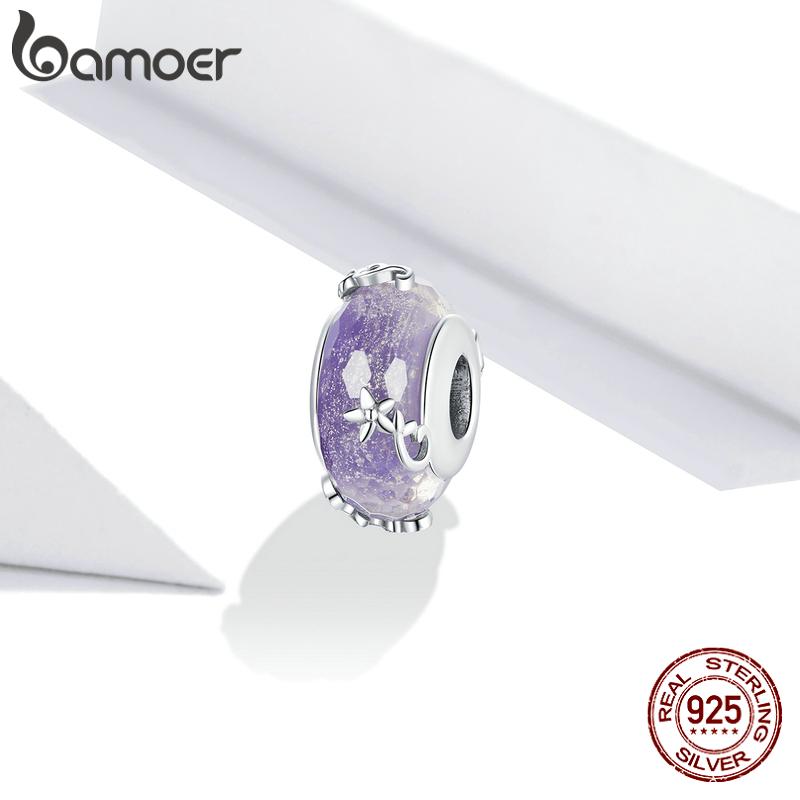BAMOER стерлингового серебра 925 пробы фиолетовые стеклянные бусины-шармы «мечта» для оригинальных браслетов и ожерелья диаметром 3 мм