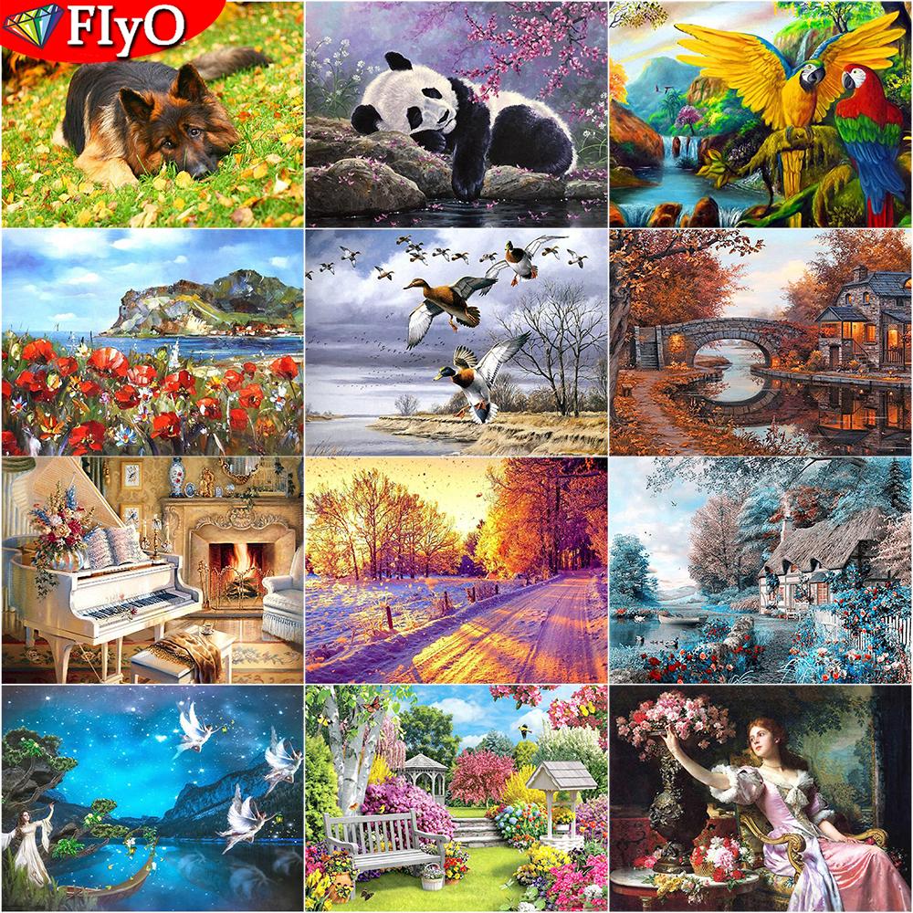 Алмазная живопись Новый Пейзаж Красные Цветы 5D Алмазная Вышивка Крестом Закат Панда Белый Тигр Животные Стразы Мозаика Настенное Искусство