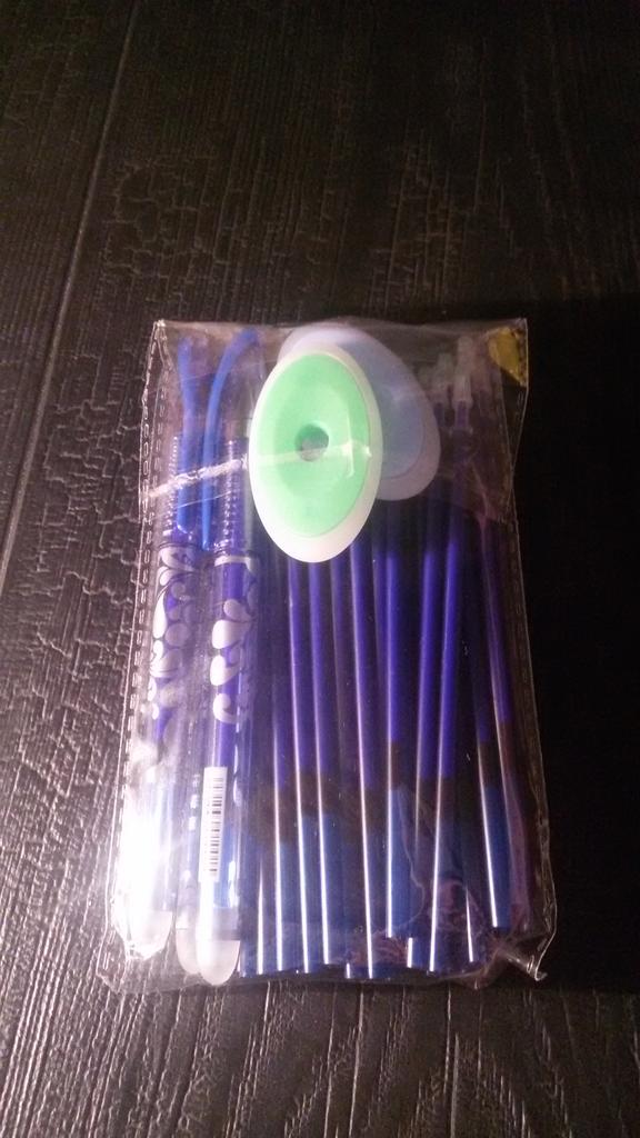 Гелевые ручки. 💎 Набор стираемых гелевых ручек. 💎 В набор входят три гелевые ручки, 50 стержней, и 2 ластика. 💎 Материал ластика плотный, качественно удаляет рисунок, нанесенный данной ручкой. 💎 Запасные стержни закрыты белым колпачком. 💎Фиксация колпачка на ручке плотная, это не даёт возможности маленьким детям нанести себе случайную травму пером стержня. 💎Ручка приятна на ощупь и удобна в использовании. Спасибо Joom😙