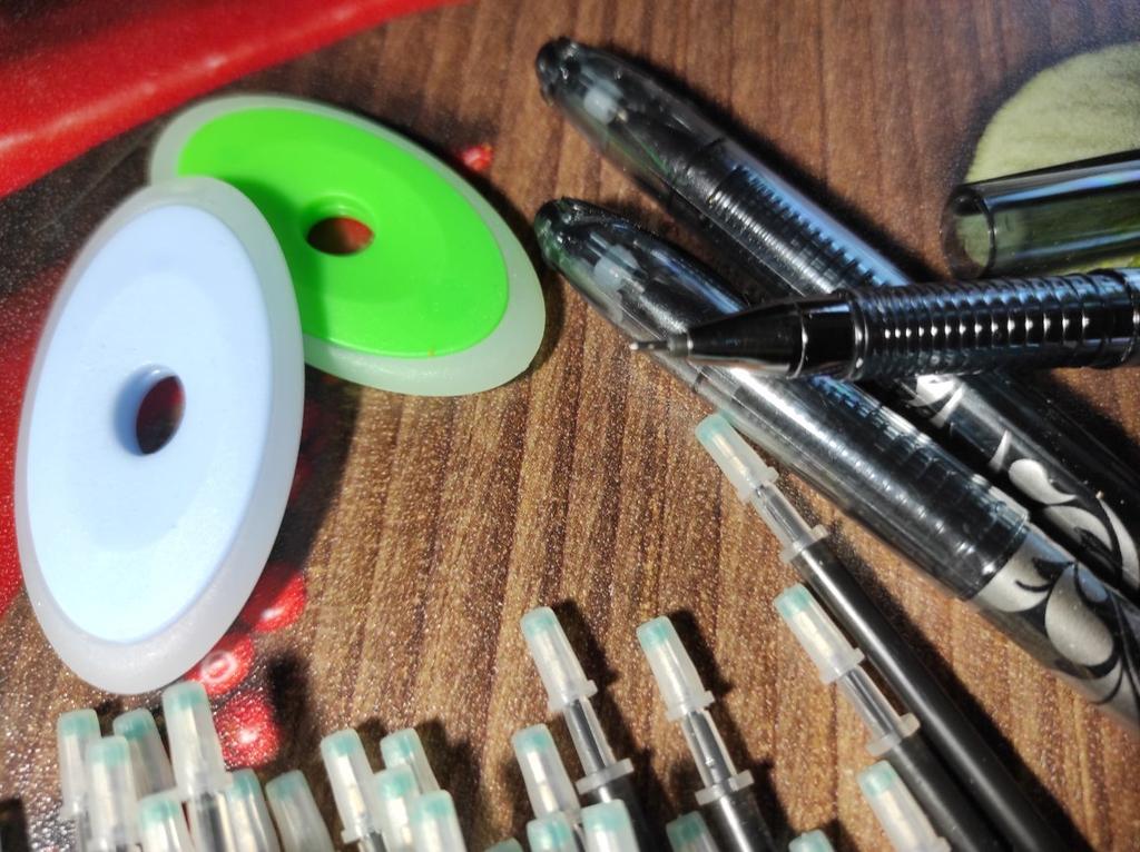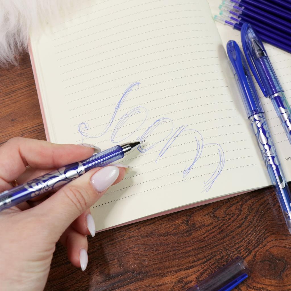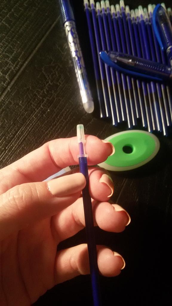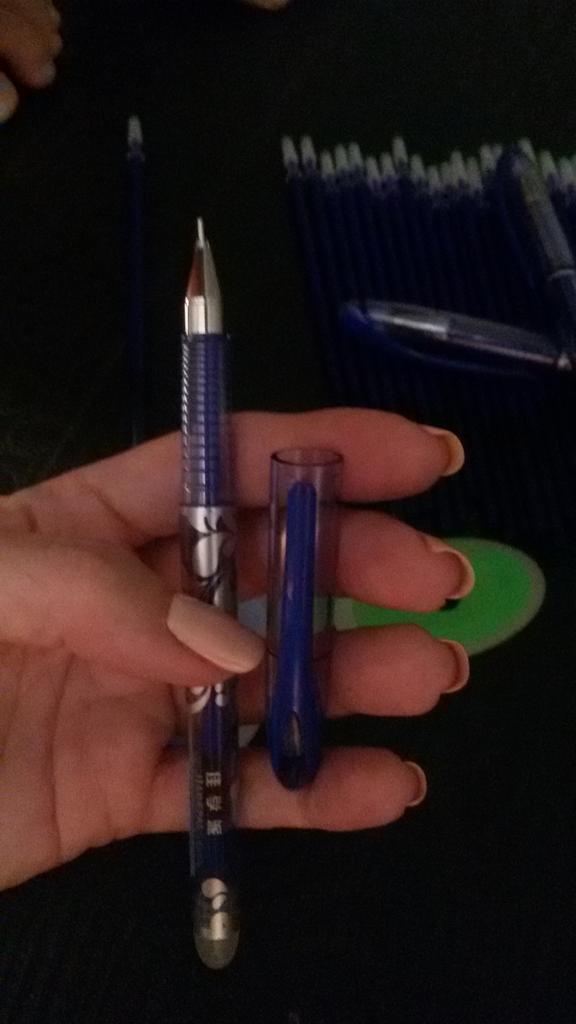 Ручка гелевая со стираемыми чернилами Очень классный набор🥰👍 3 ручки со стержнем, 50 гелевых стержней и 2 резинки стирать ошибки. Ручка снабжена стержнем с уникальными чернилами, особая технология изготовления которых позволяет им обесцвечиваться при увеличении температуры до + 60 °С или под воздействием трения. Ручки имеют тонко пишущий гелевый стержень. На обратной стороне ручки закреплен специальный ластик, которым стираются чернила с листа бумаги. После стирания чернил, следов от их присутствия на бумаге полностью не остается, особенно если не давить на бумагу при написании. Очень полезно для школы, корректировки ошибок в документах. Ручками довольна, рекомендую👍