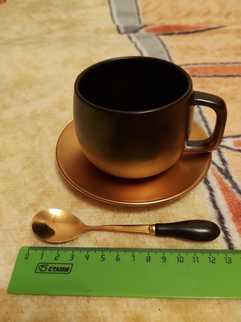 Кружка, тарелочка и ложка пришли красивые!!! Шла 2 месяца. Пришло все целое, соответствуют описанию и фото. Я довольна! Спасибо Джум и Продавцу! Небольшой ньюанс,...... поскольку кружка и тарелочка матовые, ( "матовый блеск" ), отпечатки пальцев и губ после питья чая, сразу остаются на кружке и тарелочке. Но это не критично.