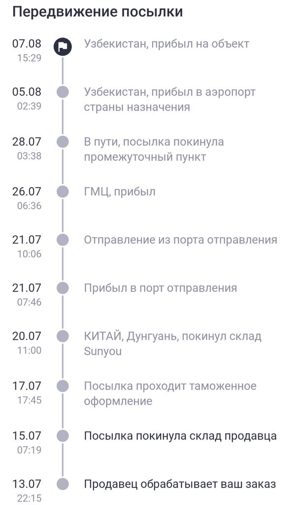 Заказал в Ташкент 13.07.2023. Звонок с почты поступил 5.09.2023. Забрал шампунь 9.09.2023. Доставка очень долгая для такой мелочи. Отчасти, думаю, она связана с работой Почты Узбекистана, т.к. ещё в августе шампунь прибыл на территорию страны и внутри неё гулял ещё месяц (по Узбекистану трек не отслеживался; см. график). В другом магазине уже заказывал шампунь голубого цвета, который мне очень понравился и при экономном использовании его хватило где-то на полтора месяца. Габариты лавандового шампуня: длина - 5,5 см, высота - 2 см. Шампунь просто положили в белый пакет. В отличие от голубого шампуня, лавандовый не был обернут в плёнку. Запах очень приятный. Пока что данным шампунем не пользовался. Как воспользуюсь - дополню отзыв. UPD (11.09.2023) - шампунь легко пенится с одного кругового движения. Отмывает волосы до скрипа, придаёт объем и даже укладывает их. Шампунем очень доволен.