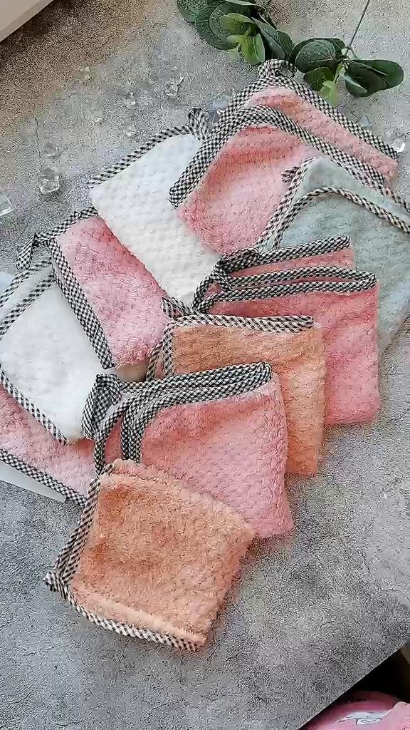 🧹 Классные тряпки Пришёл заказ тряпок, я заказывала сразу 10 штук (это супер выгодно!). О чудо, продавец не обделил и весь десяток я вытащила из посылки. Мне достались в основном, розового оттенка. Каждая тряпочка в индивидуальном пакетике. Размер примерно 22 см по стороне. На вид хлипковаты и тонковаты, но симпатичные пушистенькие с прошитой окантовкой из клетчатой ткани. Но как только начала убираться, мнение моё изменилось кардинально: очень удобны для протирания пыли и очень хорошо с них пыль смывается под струёй воды из крана. В общем, и ни разу они не разваливаются, либо это случится стирок через пять-семь в стиралке, не раньше. В общем рекомендую брать сразу десяток, с пересчетом на цену одну штуки, так будет выгоднее всего.