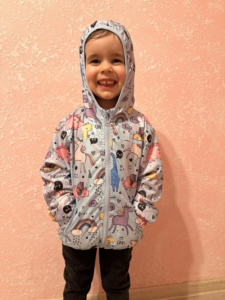 Очень милая и качественная детская утепленная ветровка от проверенного магазина VANGULL Kid💖 ✈️Посылка шла около месяца до Молдовы, Кишинёв. ✔️Качество отличное. ✔️Милый дизайн. ✔️Внутри тёплая и мягкая. ✔️Была упаковано отлично. ✔️Есть фирменный пакет и все бирки магазина. ✔️Есть да боковых кармана на молнии и один большой на липучка на спине. ✔️Размер 4-5 года подошёл хорошо на дочку. Есть небольшой запас. ✔️Есть капюшон. Дочке 2 годика и 8 месяцев и рост 98 см. Однозначно рекомендую к покупке!🥰