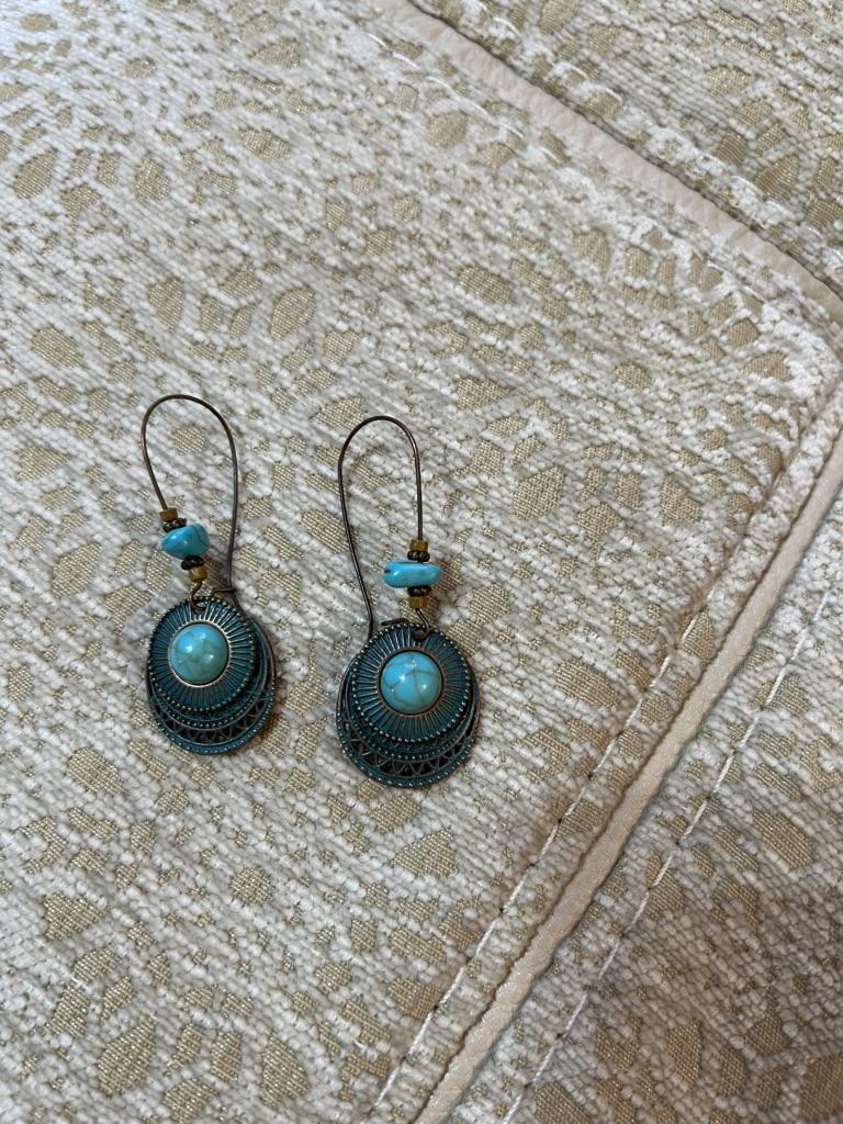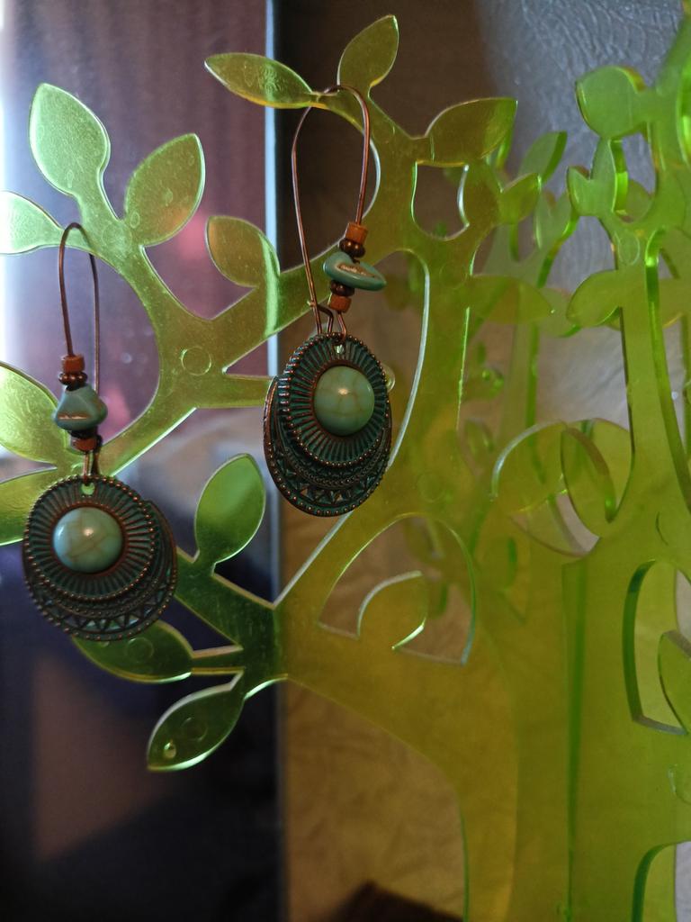 Сделаны под старину. Мне очень нравятся. Бусинка в центре-это пластик. На крепление нанизан натуральный камешек.