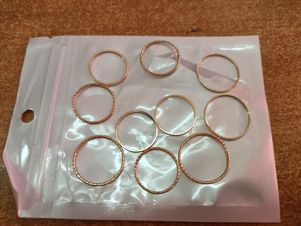 Кольца шикарные, как раз хотела. Такие, как и на картинке. Все разные по размерам, так что можно выбрать подходящие под каждый палец. Довольна, не жалею, что купила.