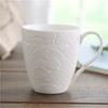 Европейская белая фарфоровая кофейная кружка с тиснением розы, костяной фарфор, винтажная кружка для завтрака, молока, офисная чашка для чая, посуда для напитков