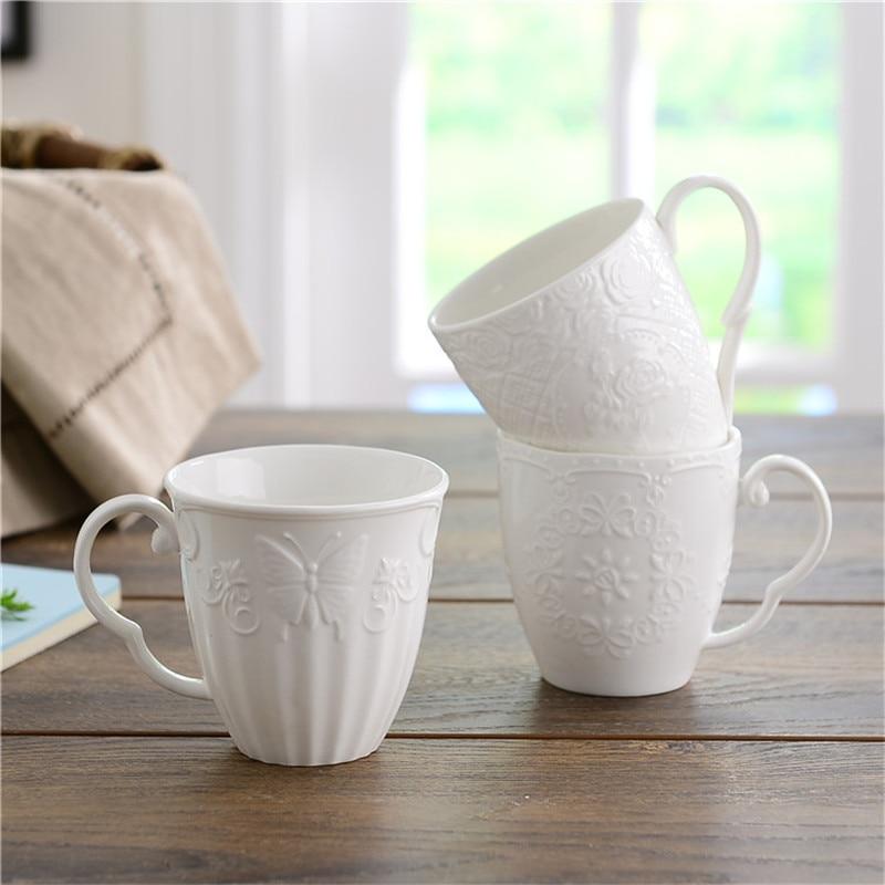 Европейская белая фарфоровая кофейная кружка с тиснением розы, костяной фарфор, винтажная кружка для завтрака, молока, офисная чашка для чая, посуда для напитков — купить товар онлайн с бесплатной доставкой по всему миру!
