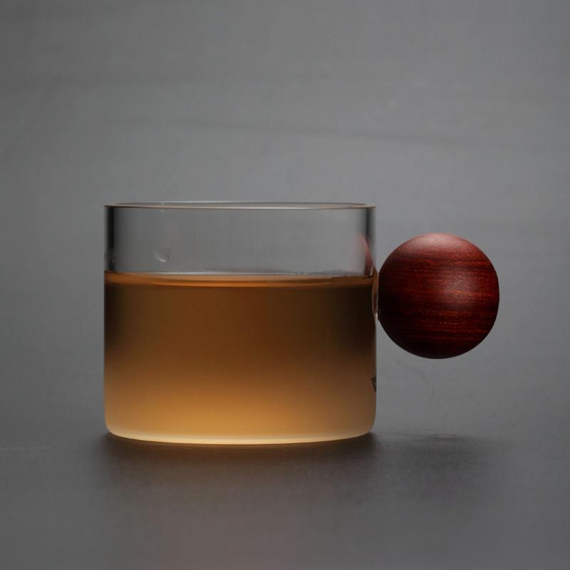 Стеклянная чашка для виски и вина с деревянной ручкой, офисная маленькая чайная чашка, кружка ручной работы, посуда для напитков