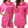 Женская летняя сексуальная ночная рубашка, однотонный шелковый атласный халат, свадебное платье подружки невесты, банный халат