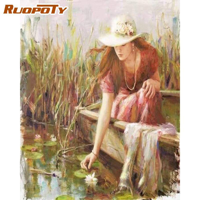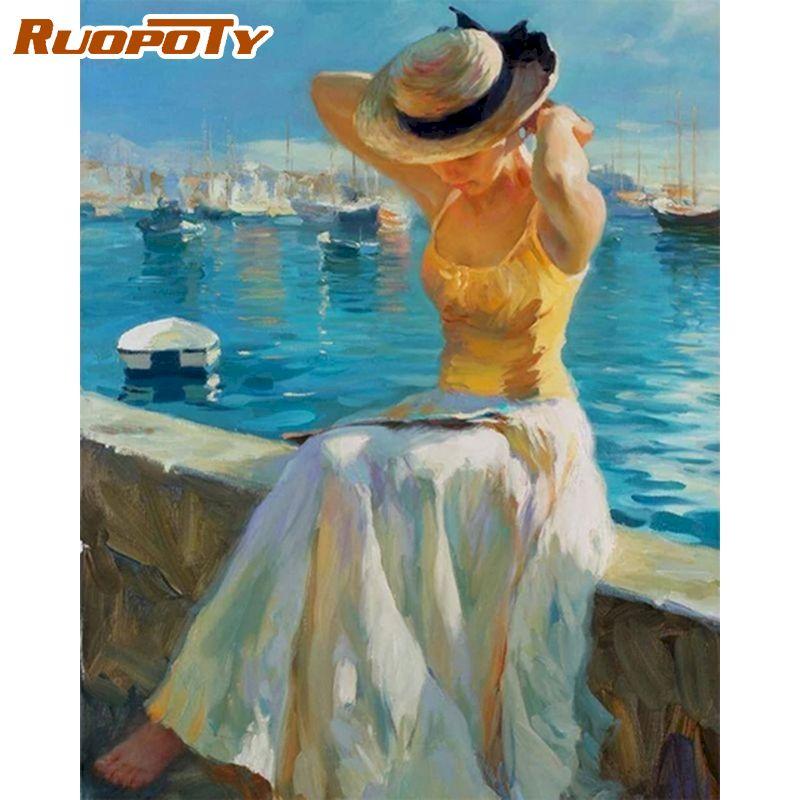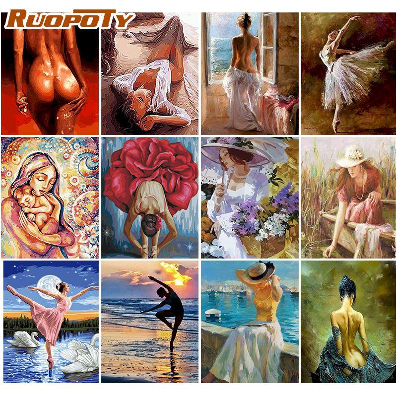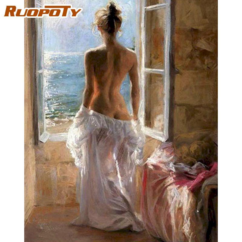 RUOPOTY Сексуальная женская картина маслом по номерам для взрослых, акриловая краска «сделай сам», ручная роспись для украшения дома, 40x50 см, безрамная