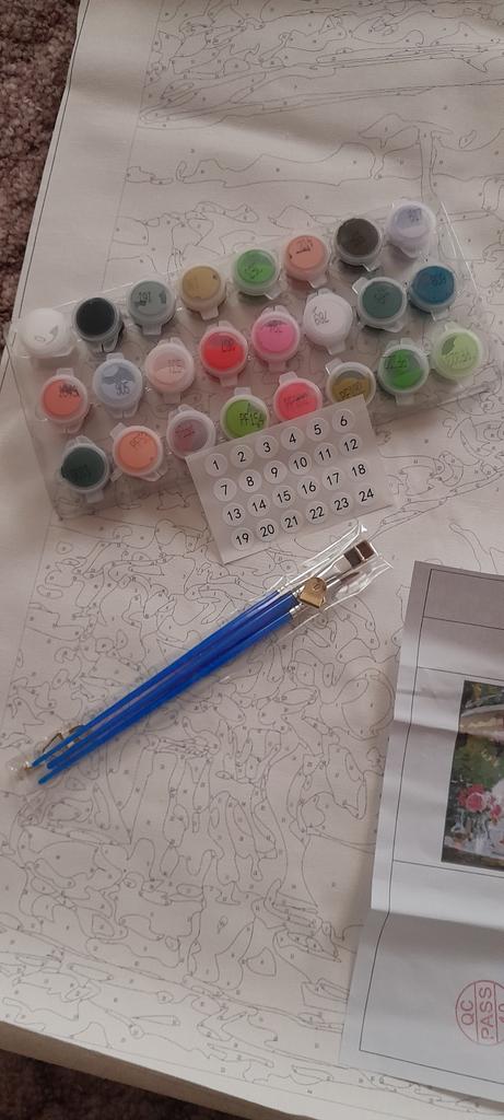 Заказ пришел быстро через 3 недели. За доставку поставила плохо, потому что картина пришла очень замятая, хоть и упакована была хорошо - на валик. Про качество картины сказать не могу, еще не раскрашивала. Краски свежие.