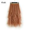 Женская мода Асимметричная высокая талия с оборками Сетчатая пачка из тюля Длинная юбка-миди Черный, белый, розовый