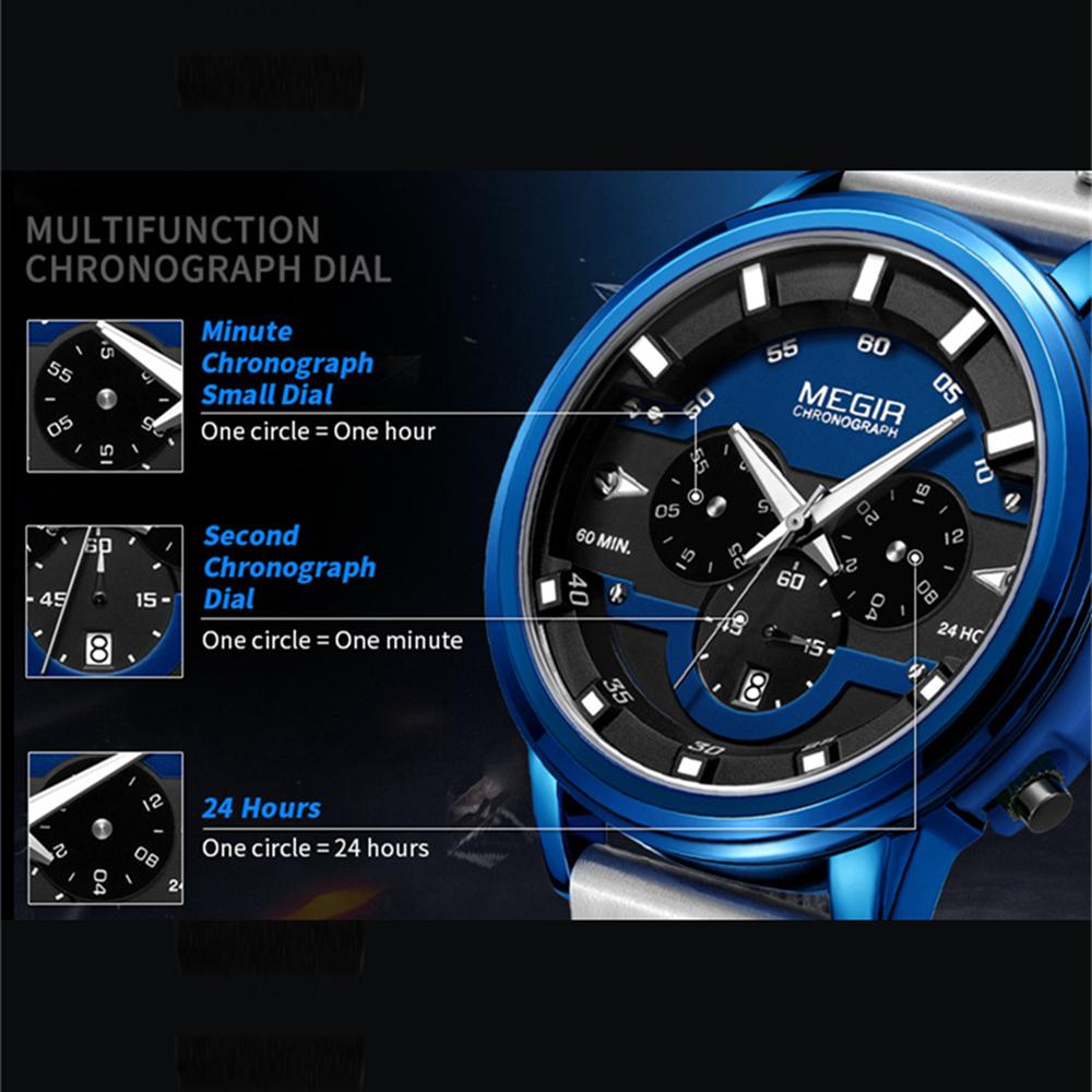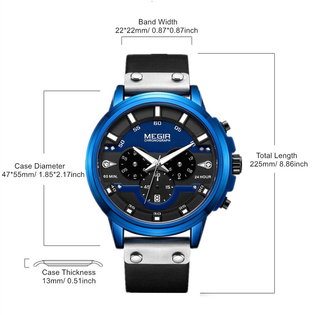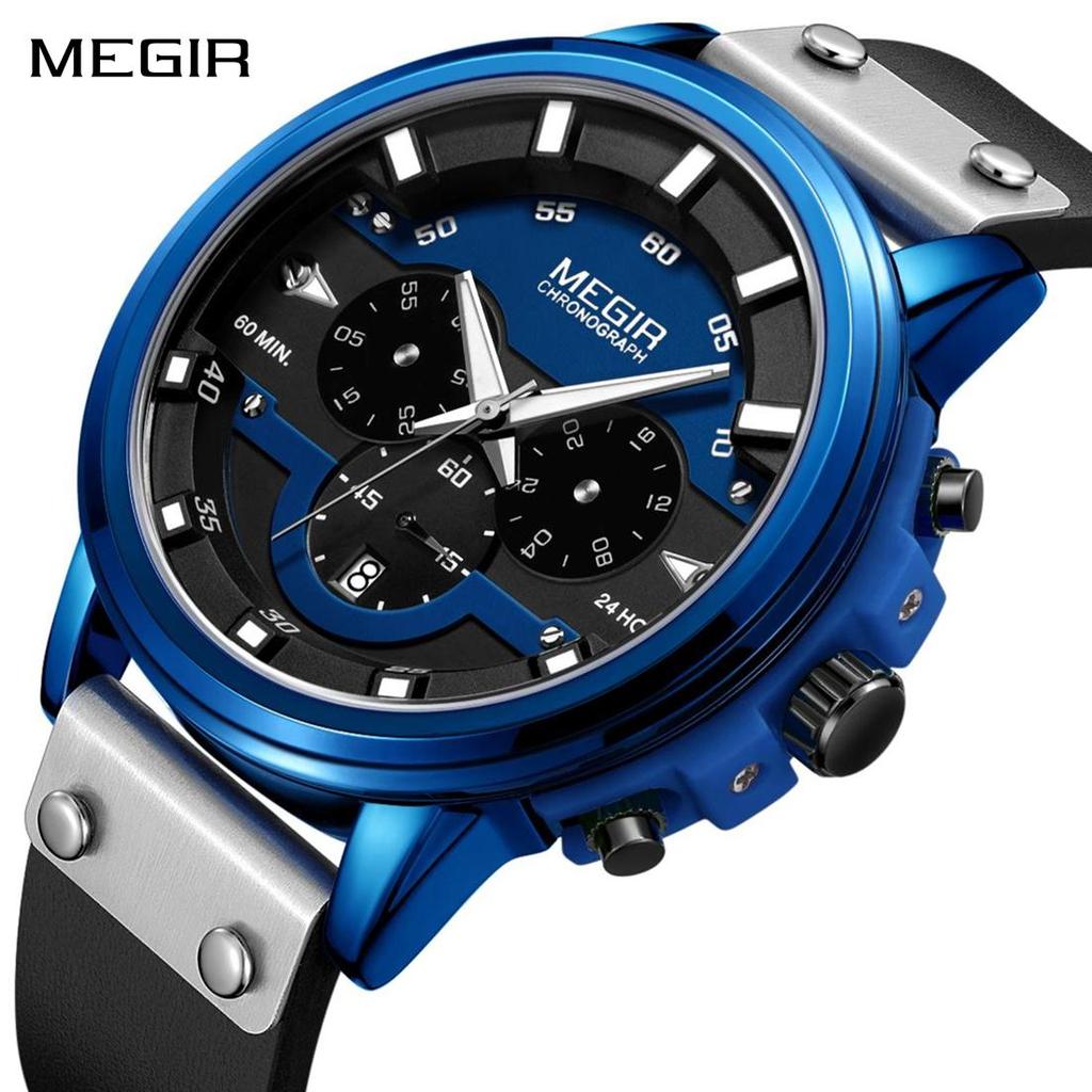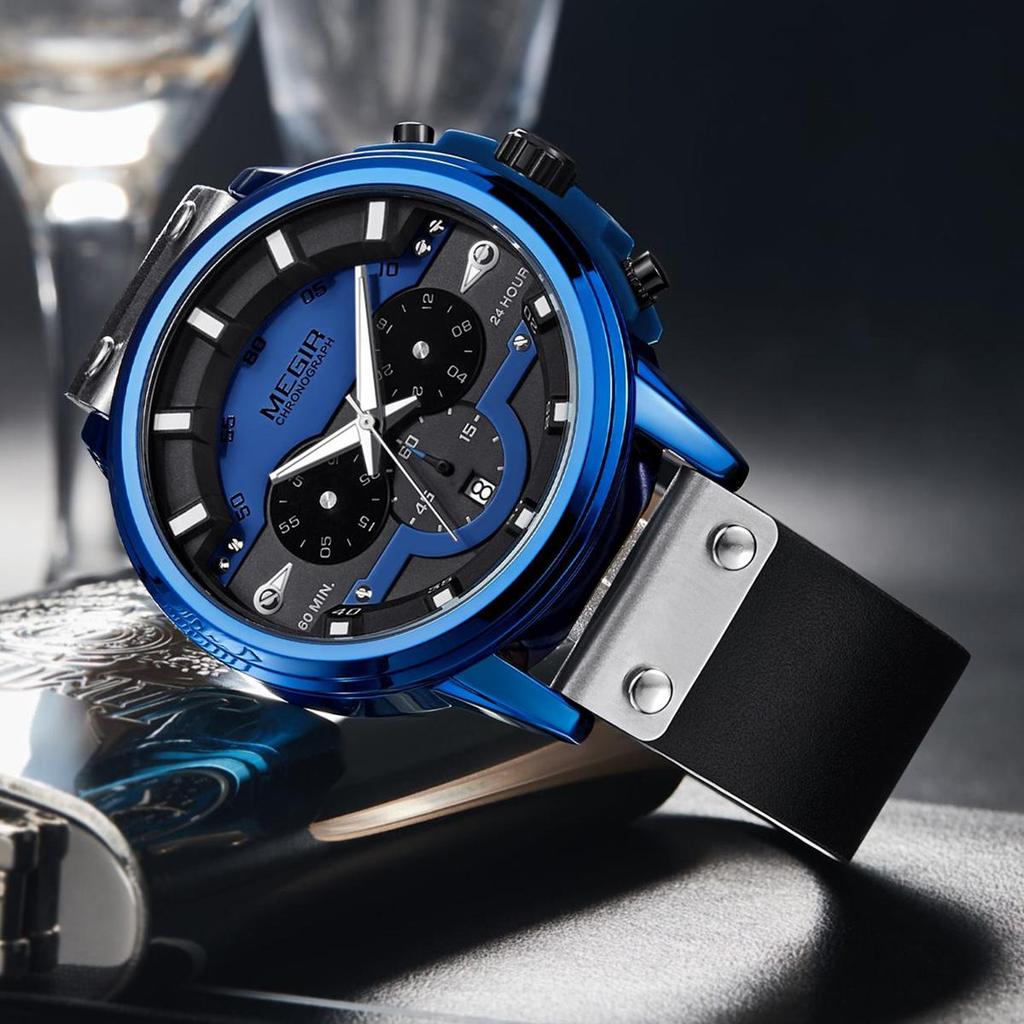Megir Сине-черные роскошные армейские кварцевые наручные часы для мужчин