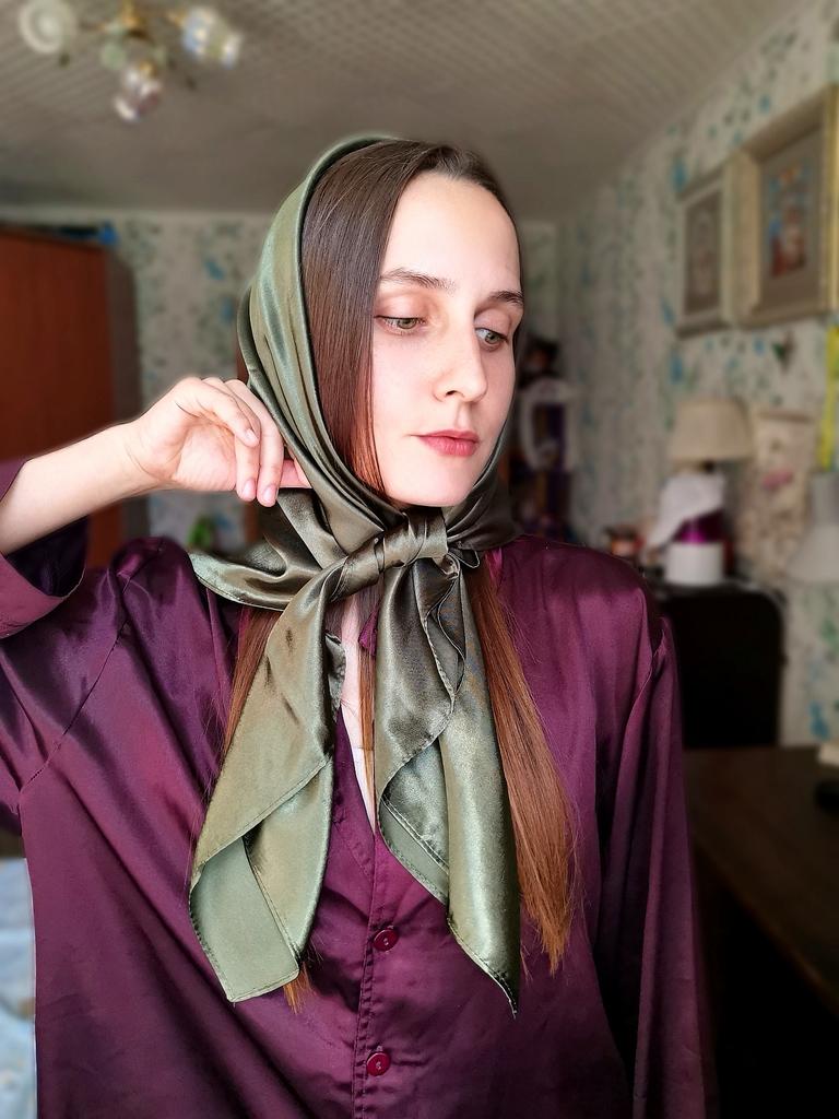 Большой шёлковый платок 🧕 ➕ ПРОМОКОД - 5 % от меня 😉 🔥 IHQVL4SSCA 🔥 На самом деле это сатин, потому что шёлк так дёшево не стоит. Главное, что ткань очень мягкая, приятная и совсем не мнется 💯 Люблю платки за то, что благодаря им можно удачно разнообразить свой образ. ❇️ Длина - 90*90 см. ❇️ Швы ровные. ❇️ Ткань достаточно плотная. После стирки стяжек не образовалось. ❇️ У меня платок в темно-зелёном цвете. В подборке у продавца представлено 24 цвета на выбор. 🚚 Доставка до Саратова 1 месяц. Трек номер отслеживался 🕵️♀️