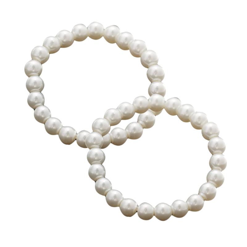 2 шт., 8 мм, эластичный браслет из искусственного жемчуга, классический простой белый круглый жемчуг, расшитый бисером, эластичные браслеты, женские модные украшения