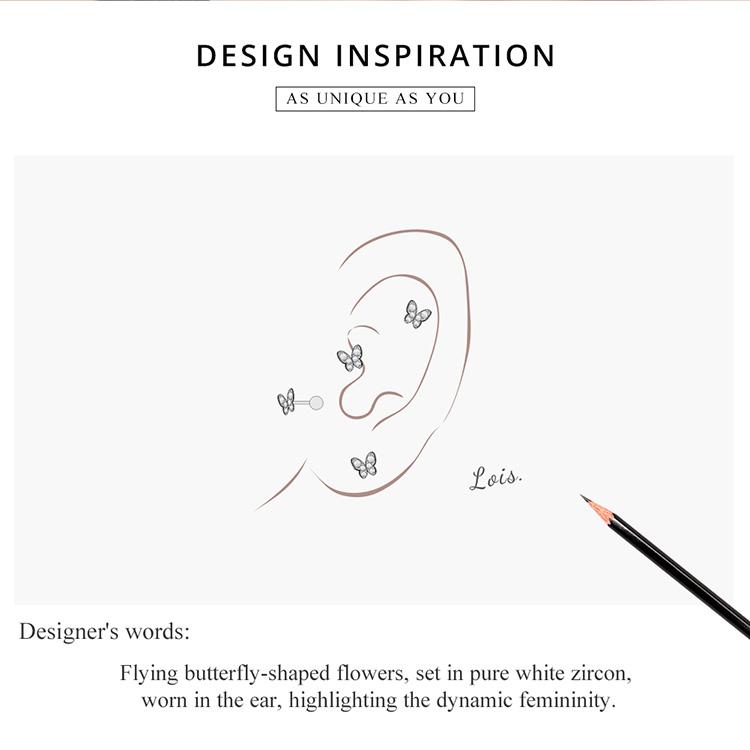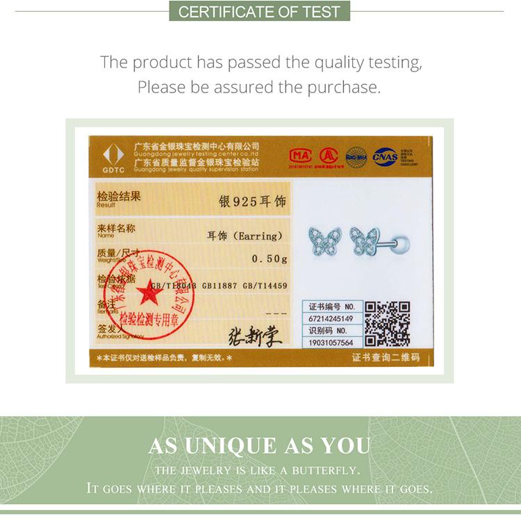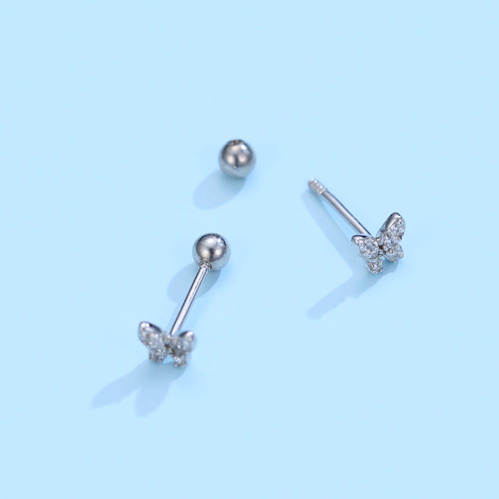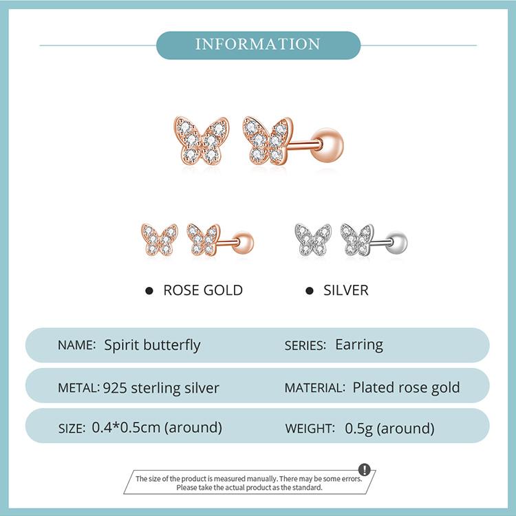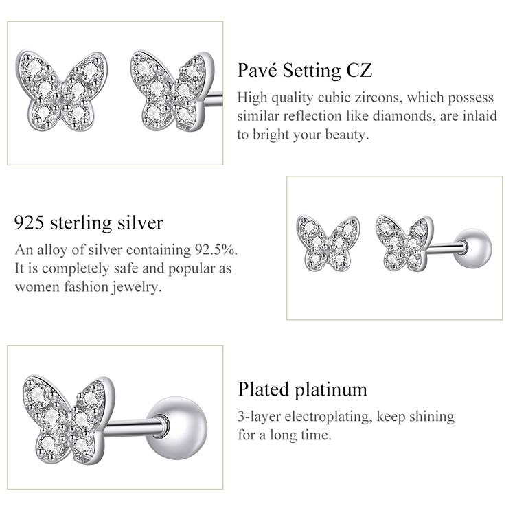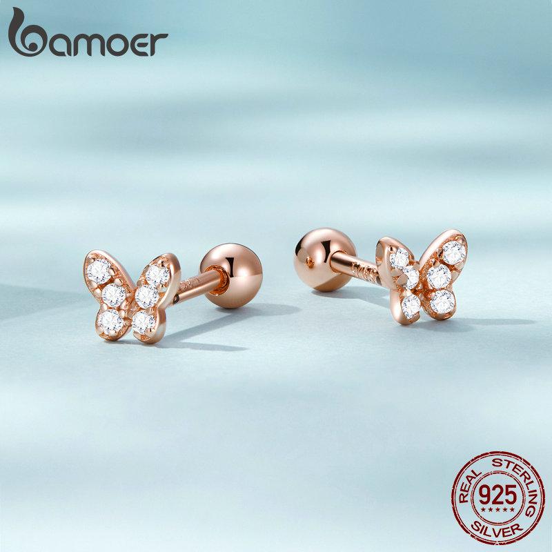BAMOER 925 пробы посеребренные платиновые милые серьги-гвоздики с бабочками, изящные гипоаллергенные серьги ручной работы 5 мм с фианитами