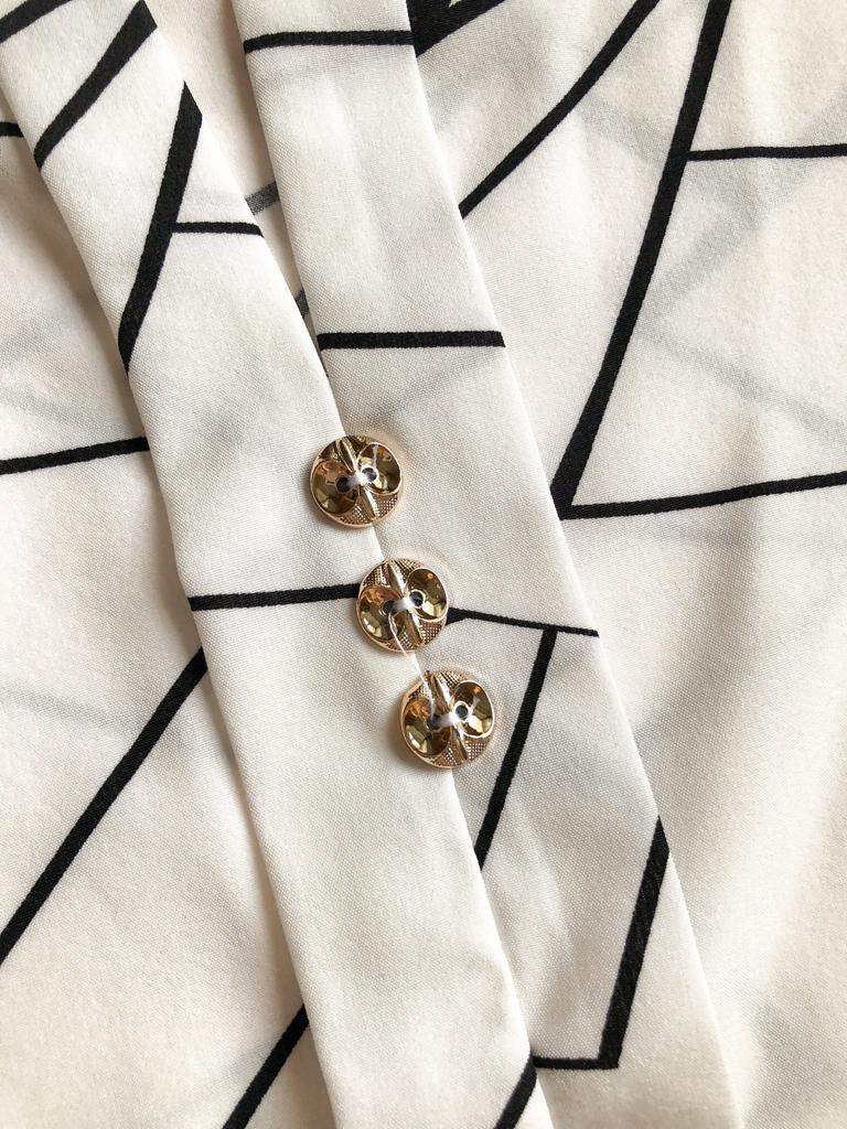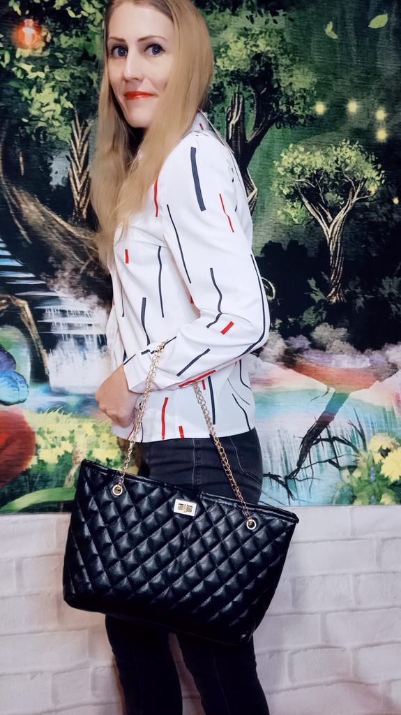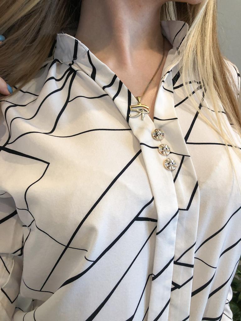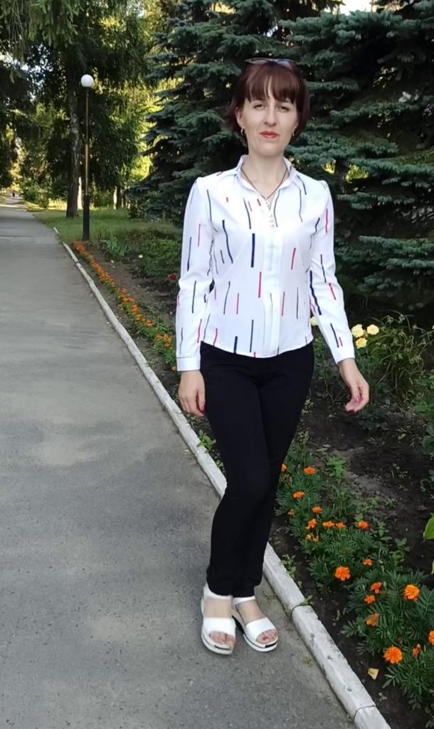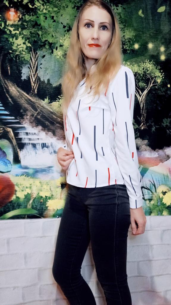 Всем привет! 👋🏼 Прежде чем я начну свой новый обзор, я пожелаю всем вам прекрасной рабочей недели! 💋 А тем, кто отдыхает желаю ярких и теплых деньков! ☀️ А у меня сегодня обзор начинается с шикарной блузки. 🙂 Если вы загляните в мой гардероб, то всегда найдете там хоть одну блузку. 🥴 Я не люблю слишком классические блузки, потому, что они у меня ассоциируются с образованием – школой. 🤪 Поэтому в моем шкафу если и есть белые блузки, то они точно будут с каким-то рисунком или дополнением. Эта блузка не просто белая, а дополнена геометрическими рисунками. Черные полосы идут в ассиметричном порядке, поэтому блузка выглядит не слишком правильной, но притягивающей наше внимание. Блузка не имеет вертикальной полосы из пуговиц, но у нее есть интересная деталь. Будто бы по блузке идет продолжение воротника поверх ткани. Но сверху, чуть ниже воротника присутствуют три пуговицы, они идут чисто для красоты. Блузка надевается через голову. С этой блузкой фигура немного вытягивается. В ней приятно находиться, ткань на ощупь мягкая и тонкая. Блузка пришла с биркой и этикеткой. На выбор у продавца 3 разные расцветки. На мне блузка в размере М. Она мне подошла, но думаю, что стоило мне взять на размер побольше. Все-таки мне показалась она немного короткой и чуть узкой в плечах. 🔅Мои параметры: Рост 165 см ОГ – 80 см ОТ – 65 см Ширина плеч 40 см 🔅Замеры блузки: ОГ – 92 см ОТ – 88 см Длина 56 см Ширина плеч – 35 см ❤️ Все равно блузка на мне сидит хорошо, и особо дискомфорта я в ней не испытываю. Советую, блузка хорошая. 🚚 Доставка до Москвы 3 недели.