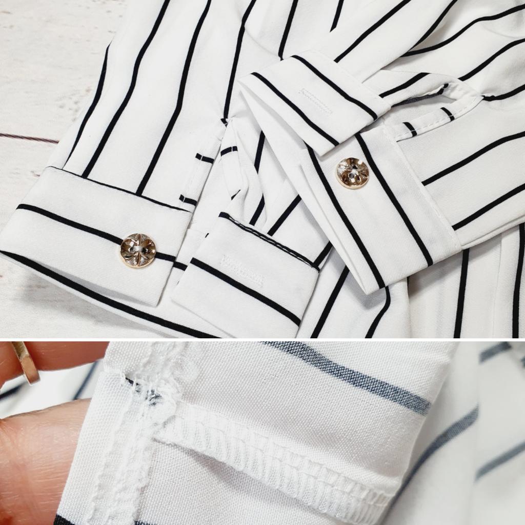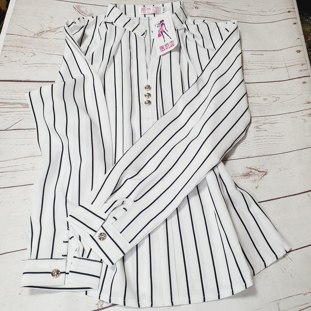 Красивая женская блуза с длинным рукавом 💕💕💕 Блуза есть в 3 расцветках, я заказывала бело-синюю, размерный ряд от М до 3XL На параметры 88/73/93 заказывала L - блуза подошла, но лучше было взять на размер больше. Замеры блузы: Объем по груди - 94см. Длина блузы - 56,5см. Длина рукава - 56,5см. Модель блузы красивая: воротник стойка, спереди украшают 3 красивые пуговицы. На рукавах манжеты, которые застёгиваются на пуговицы. Ткань тонкая, лёгкая, мягкая и приятная к телу. Пошив фабричный: строчки ровные, торчащих ниток не было. В блузе комфортно и смотрится она красиво. ✈️Приехала в Украину за 3 недели. Упакована была в почтовый и прозрачный пакеты, также был фирменный ярлык. Блуза очень понравилась. 💯% рекомендую!